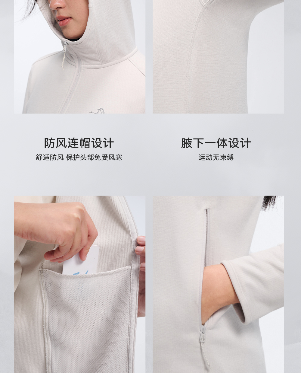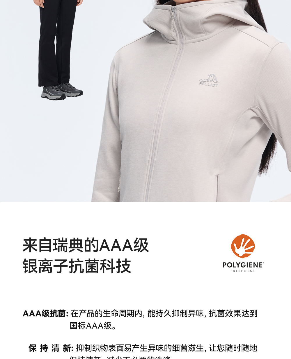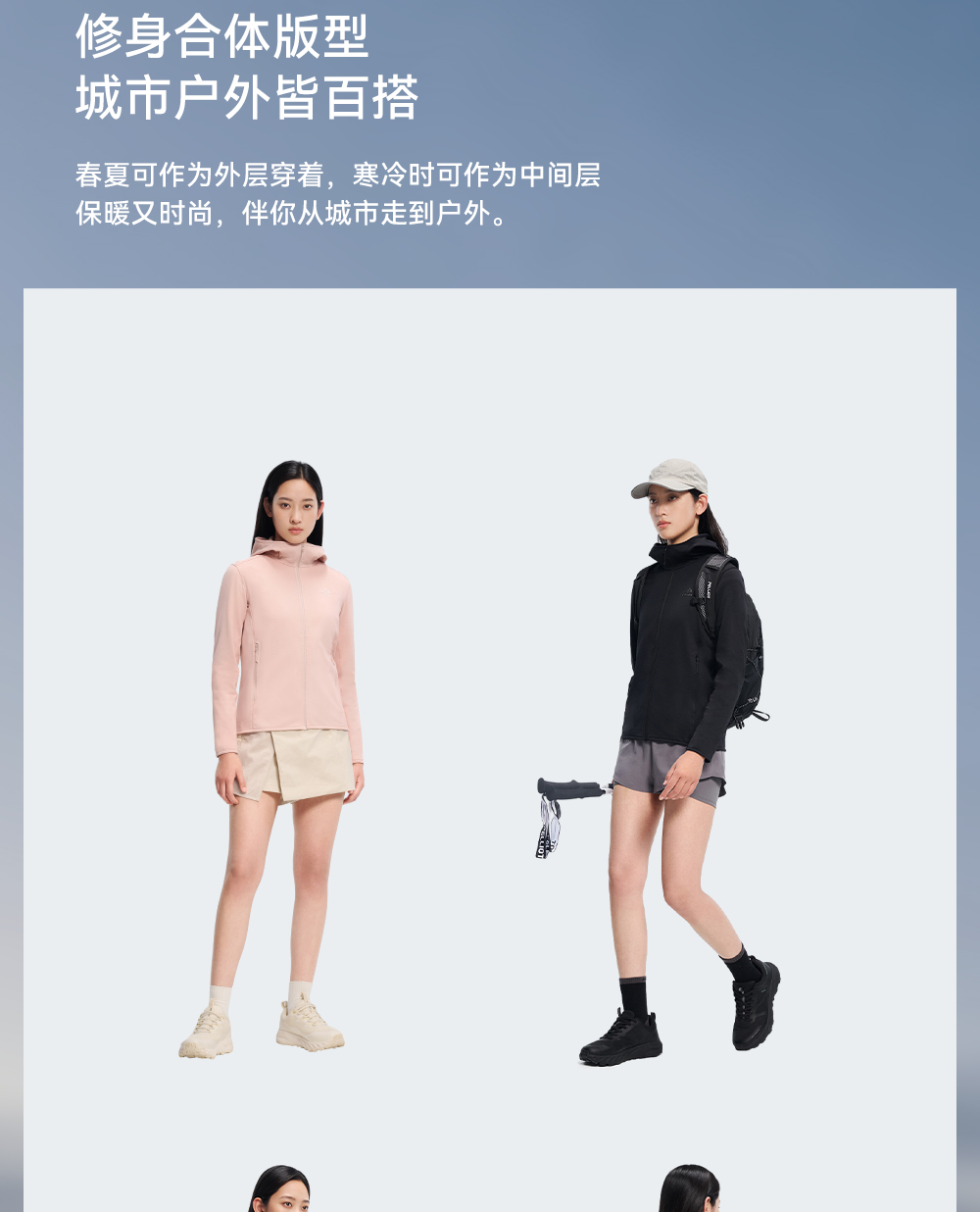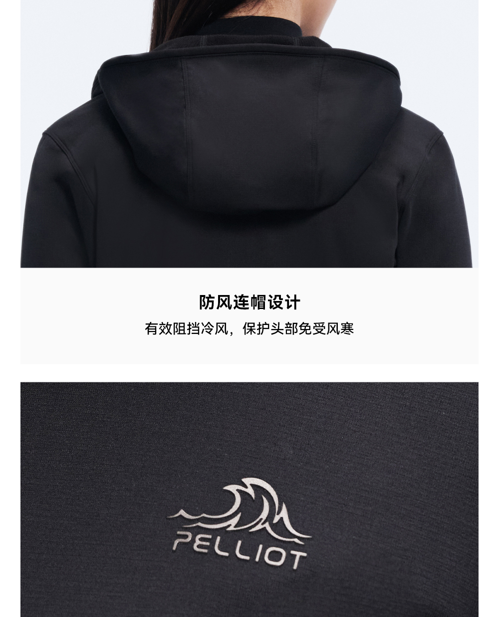 伯希和户外连帽抓绒外套女士轻量防风运动外套冲锋衣内胆休闲上衣