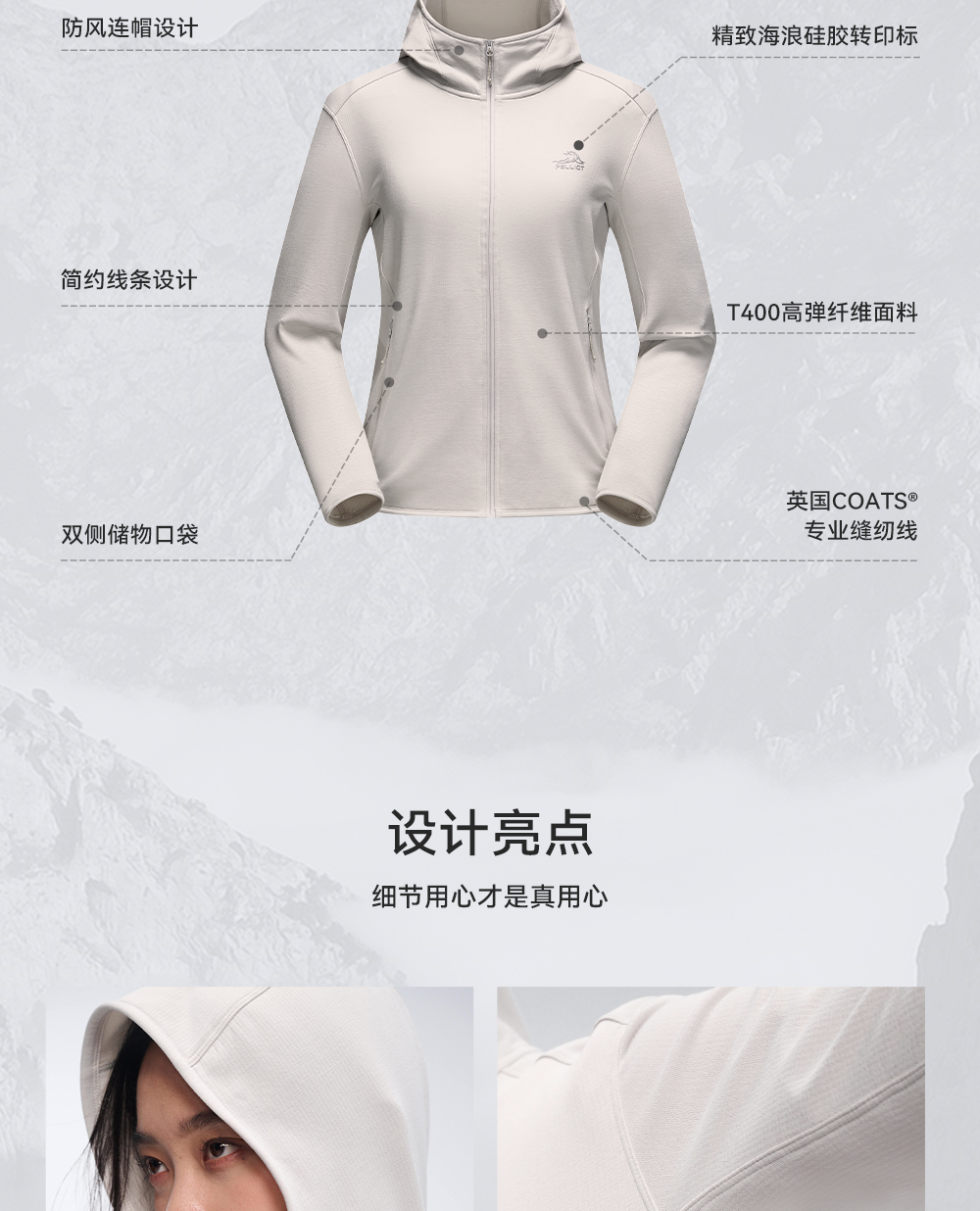 伯希和连帽外套女防风防泼户外多口袋登山服运动立领夹克轻量风衣