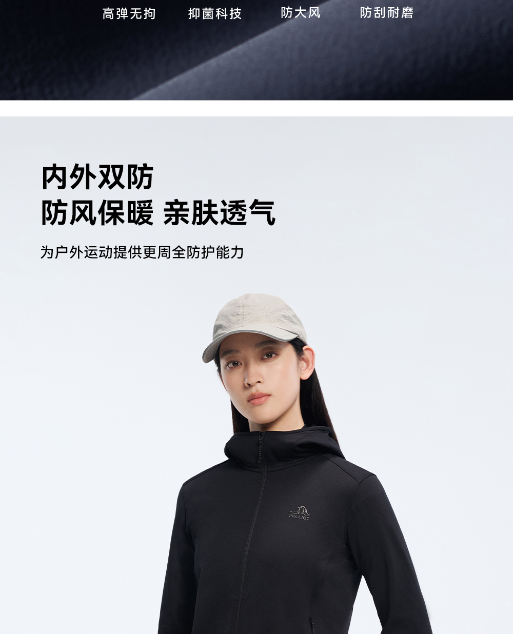 伯希和户外软壳衣女款新款防风保暖运动冲锋外套修身夹克休闲风衣