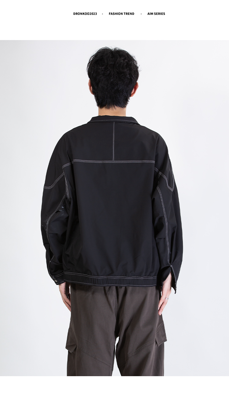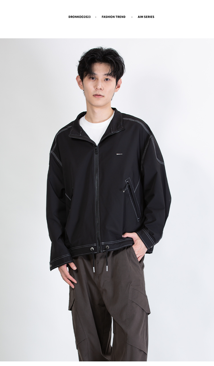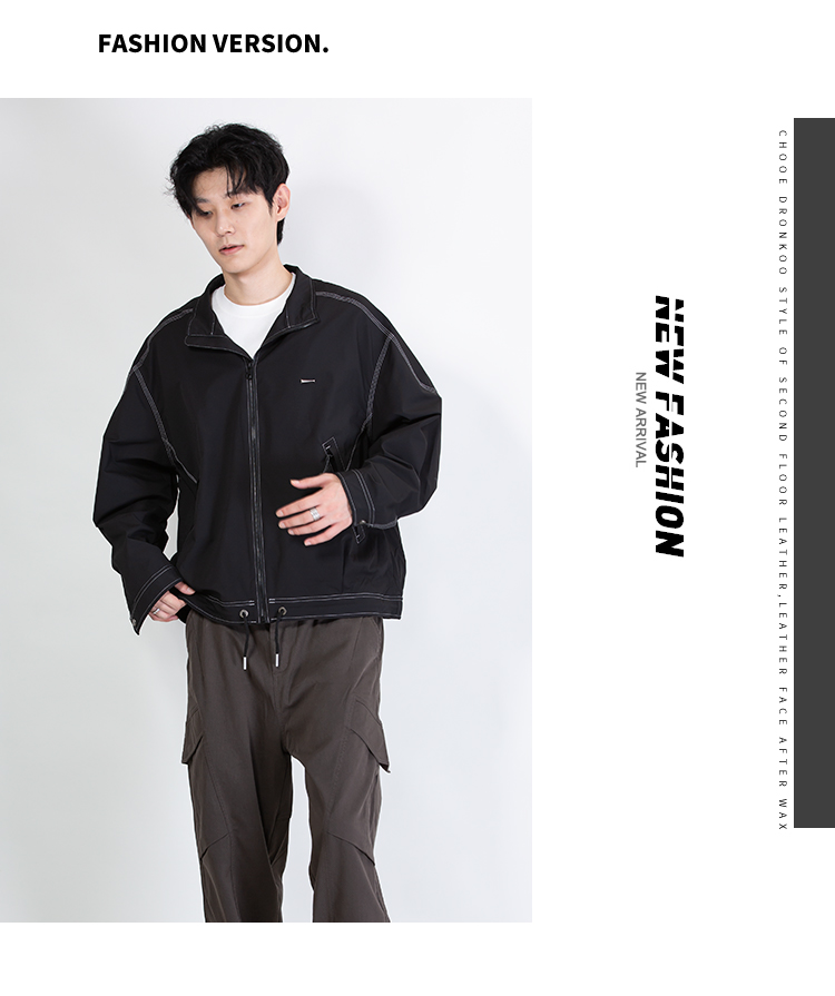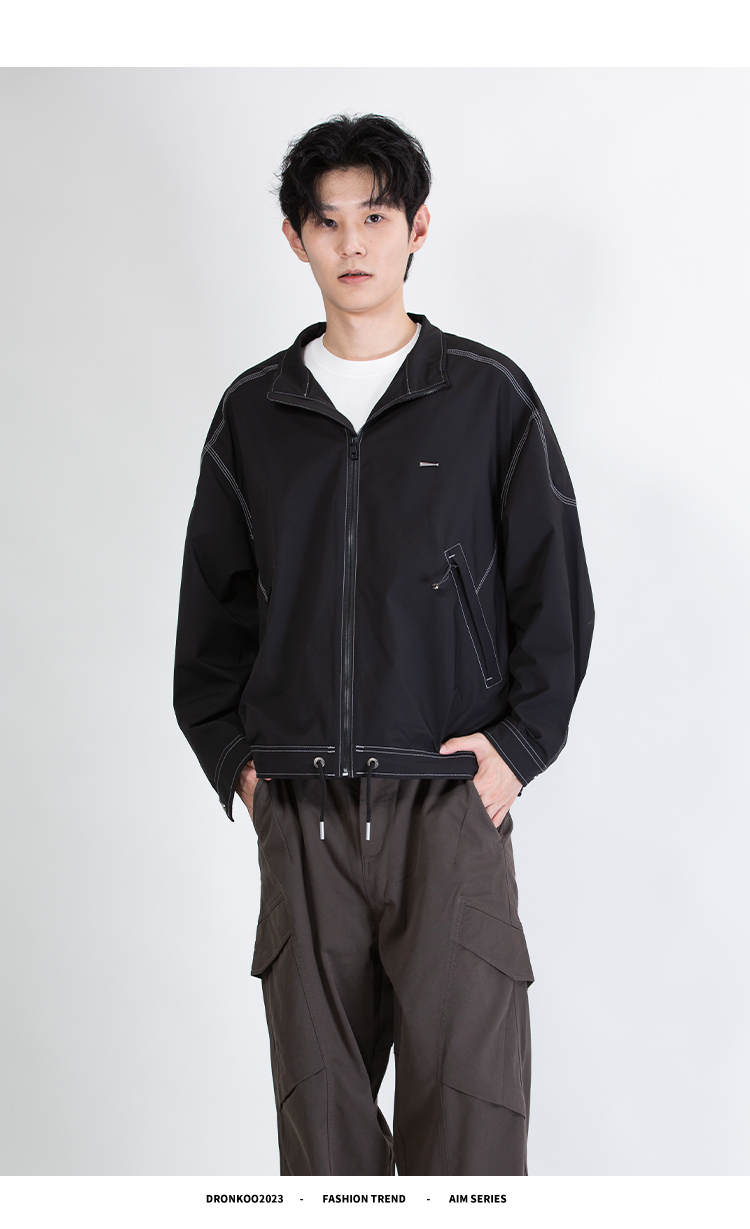 DRONKOO 2025 立领左胸鱼形金属标明线装饰中厚夹克
