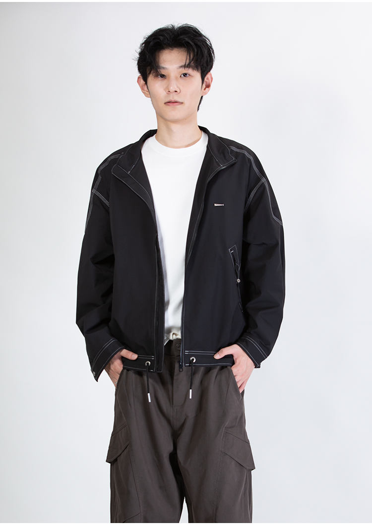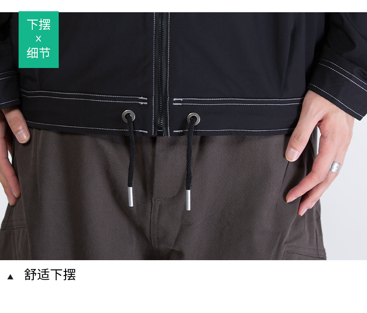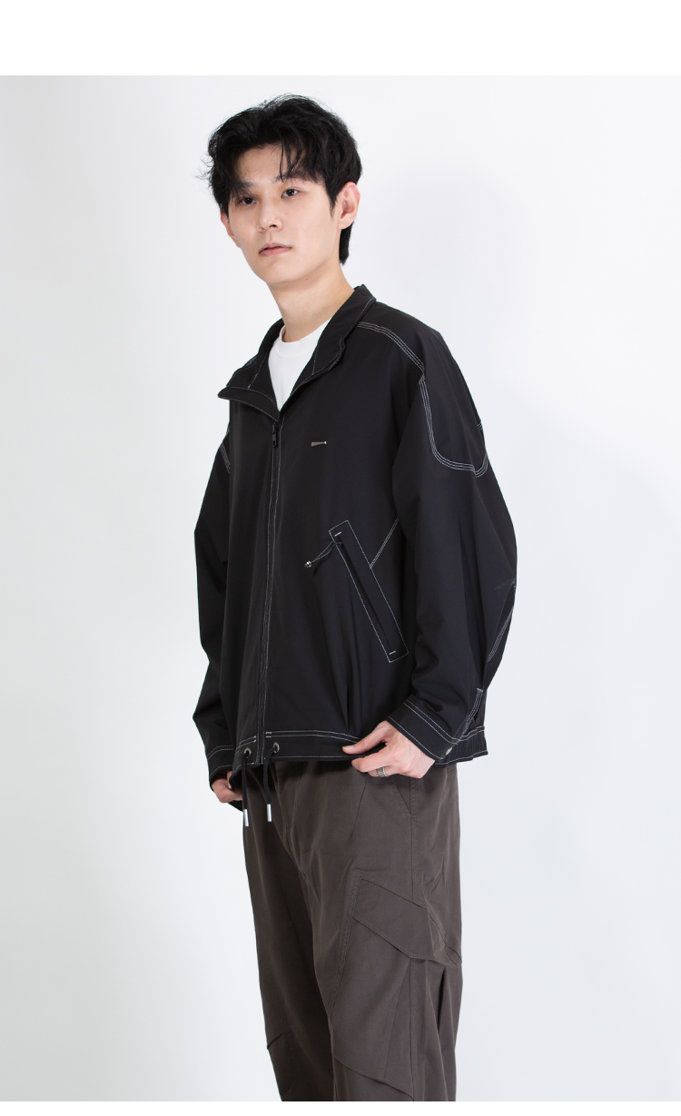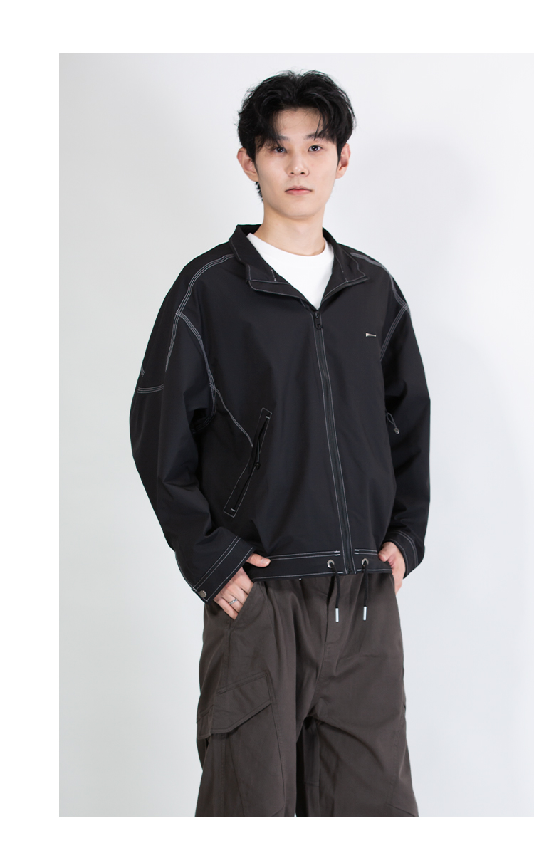 DRONKOO 2025 立领左胸鱼形金属标明线装饰中厚夹克