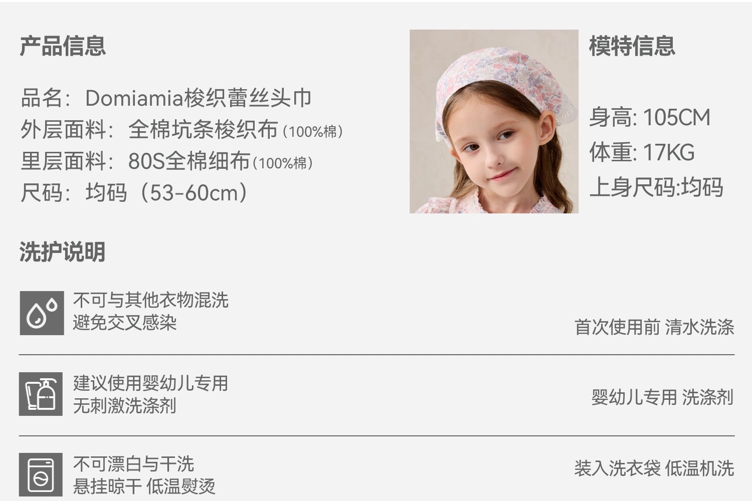 Domiamia 女宝宝梭织蕾丝头巾 0-3岁花边头饰发带