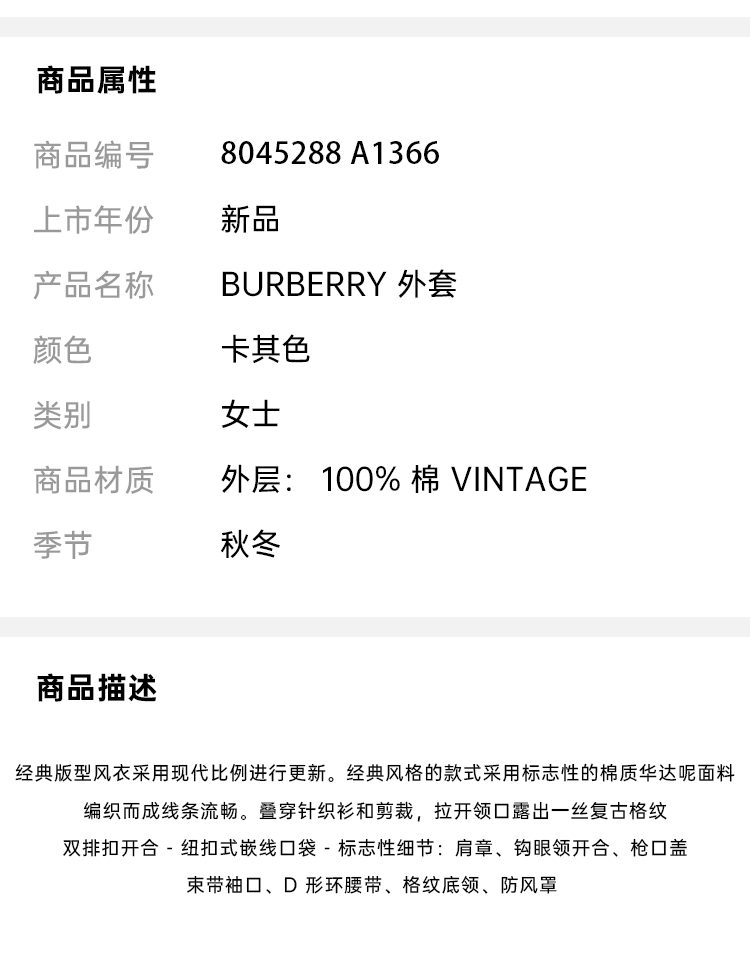 【一】BURBERRY 巴宝莉 女士肯辛顿版型 - 中长款 Heritage Trench 束腰风衣 卡其色 8045288 A1366