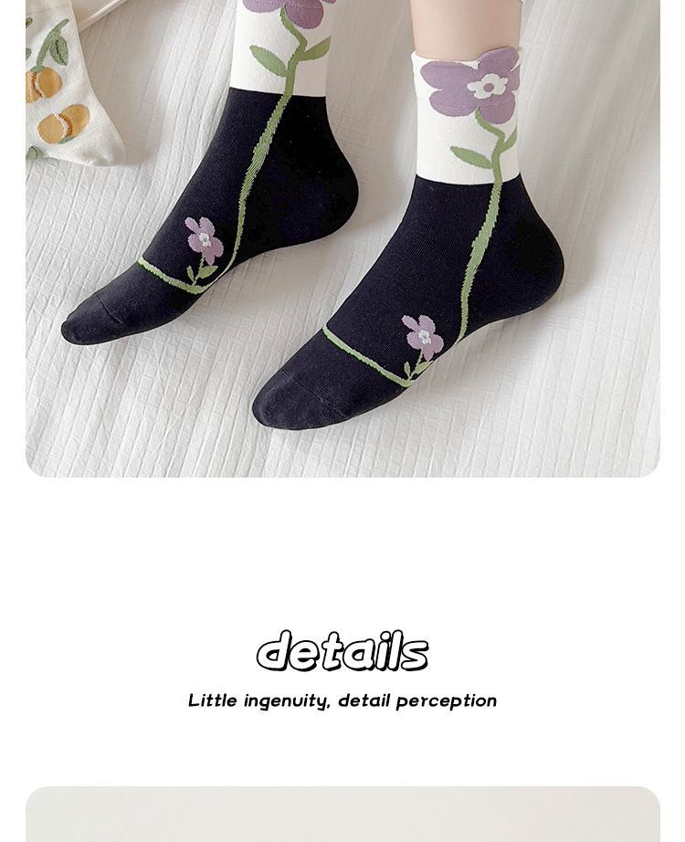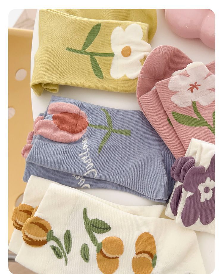 「19.9到手5双!灵动温柔」袜子女秋冬新款ins风潮袜 郁金香花朵女士中筒袜日系立体女袜配饰