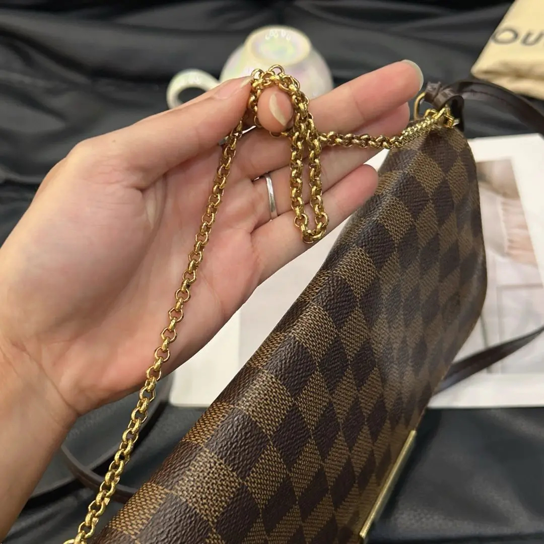【商品详情】正品二手 lv 棕棋盘格 中号 Favorite 挚爱 斜挎包 ✅97新 24x15 配件:链条 肩带 防尘袋。经典永不过时