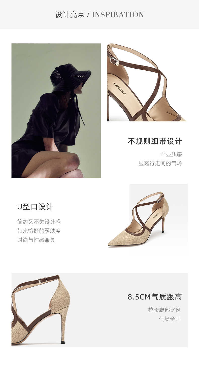 westory女鞋2021夏季新款漆皮尖头高跟细跟一字带凉鞋W21AH52961