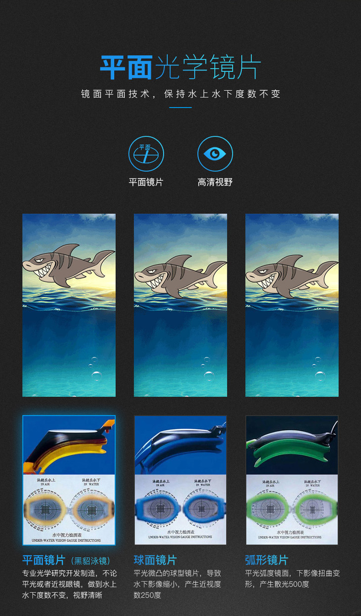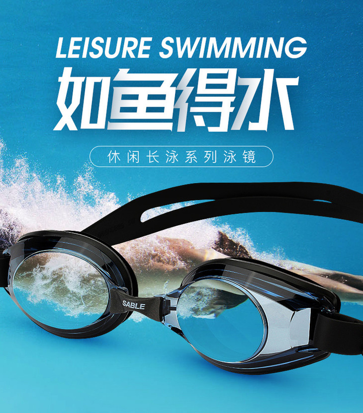 黑貂近视泳镜防水防雾高清大框带度数游泳眼镜男女游泳镜620PT-200度