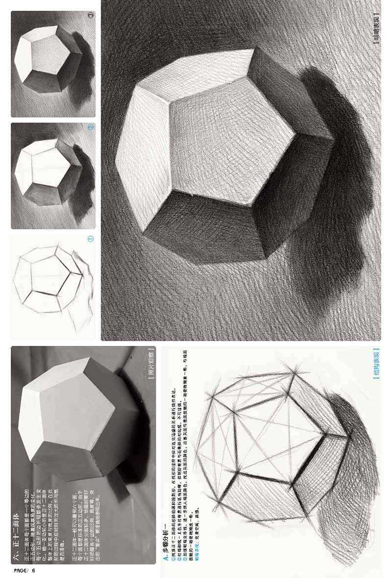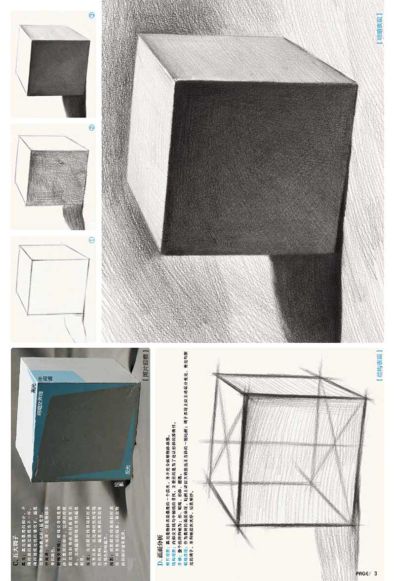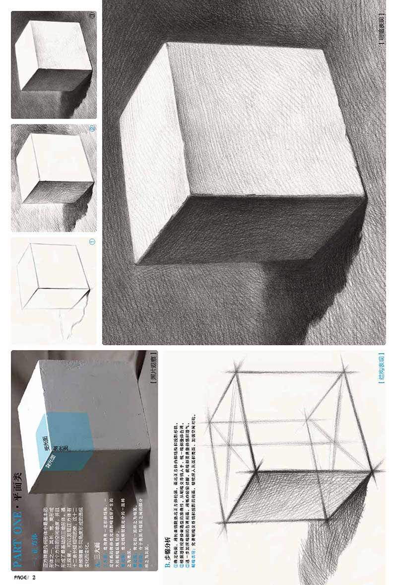 本书是一本几何形体类辅导书,适合广大美术爱好者和艺考生自学使用。该书内容第一部分为单个几何形体素材临摹,包括正方体、长方体、六棱柱、八棱柱、圆柱体、切面圆柱体、球体、棱椎体、圆锥体、四棱柱穿插体、棱柱棱锥穿插体、圆柱圆锥穿插体;第二部分为组合几何形体素材临摹,包括两个组合、三个组合、四个组合和多个组合。书稿结构明确,编撰合理科学,适合推荐给初学者使用。