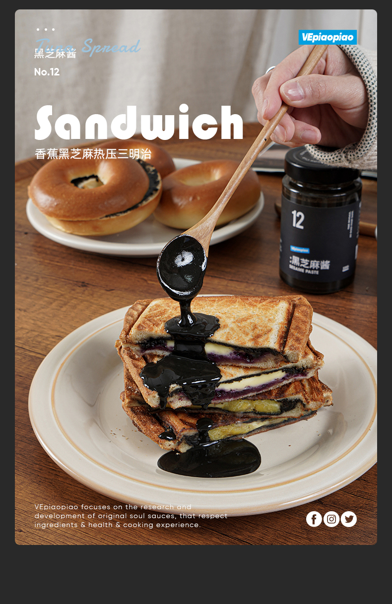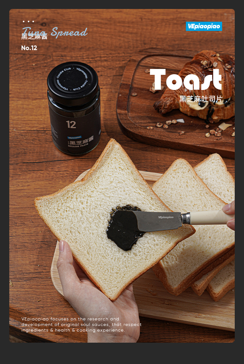 吐司抹酱‼️【VEpiaopiao纯黑芝麻酱】 非遗石磨工艺 零添加 早餐烘焙好搭档
