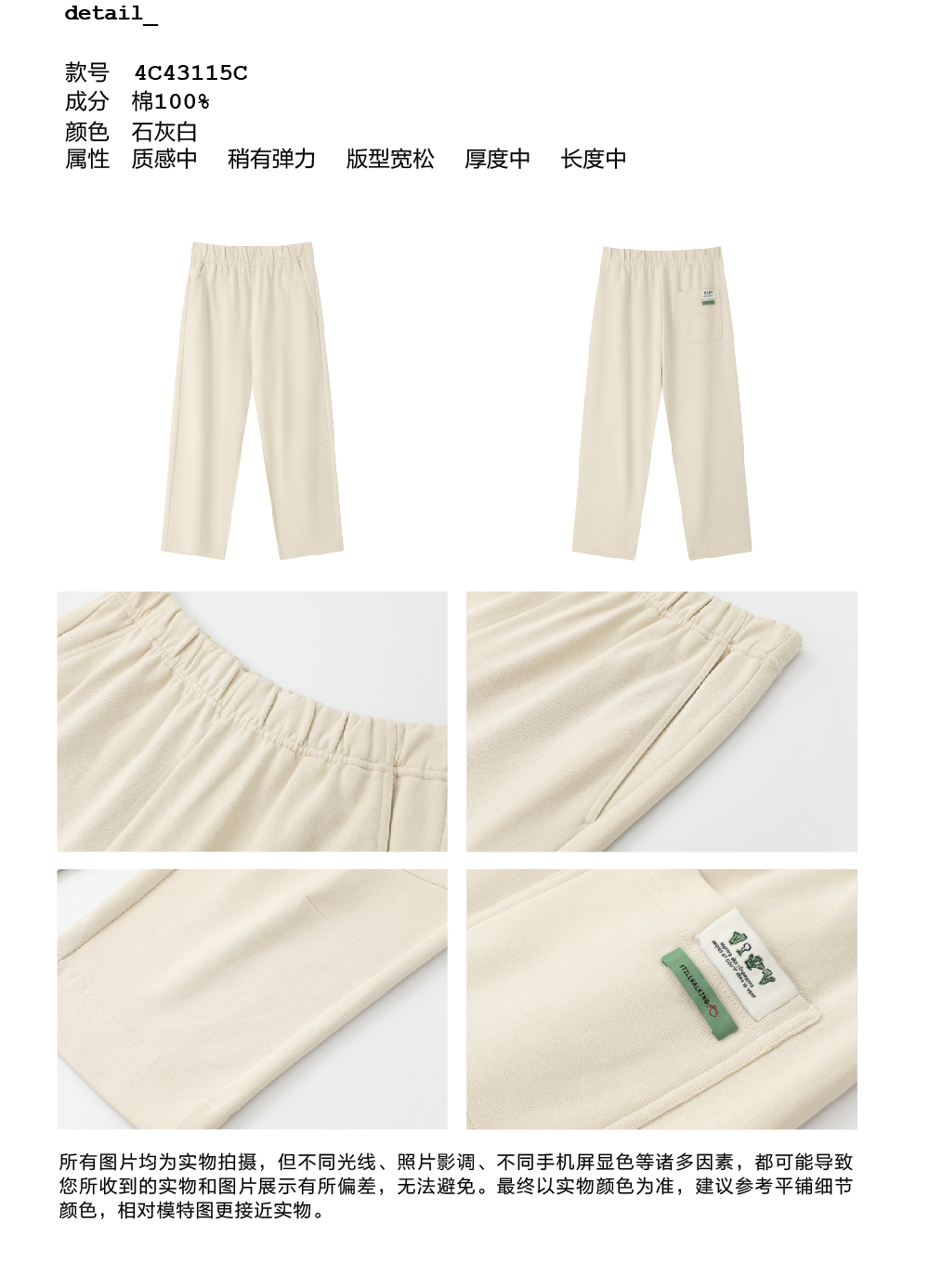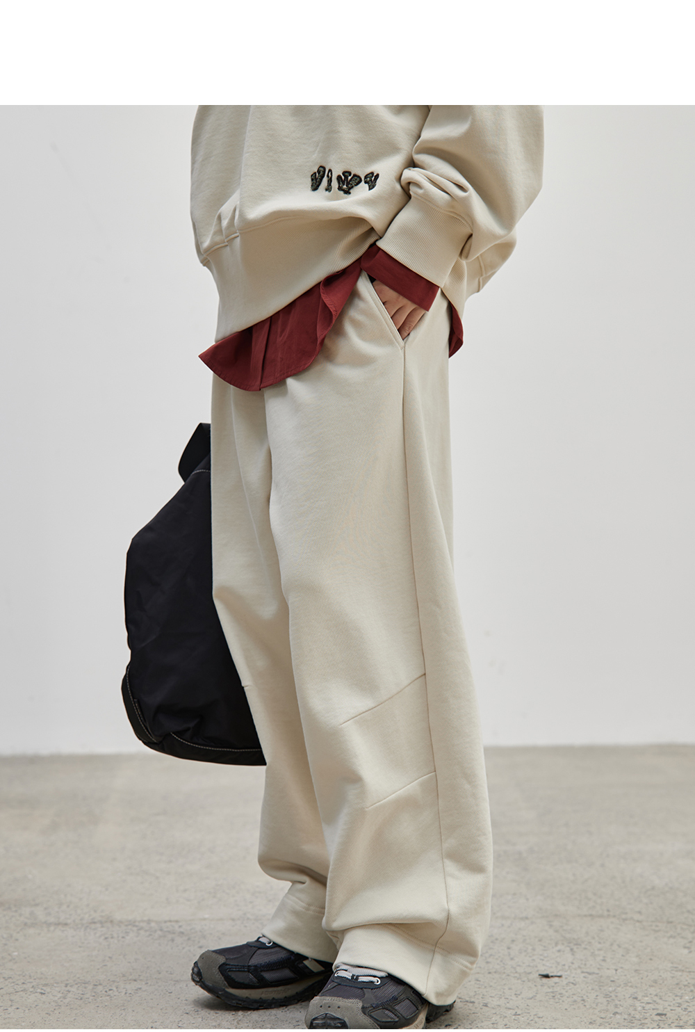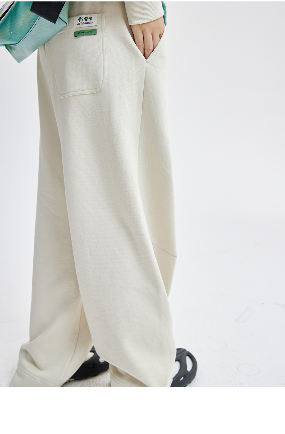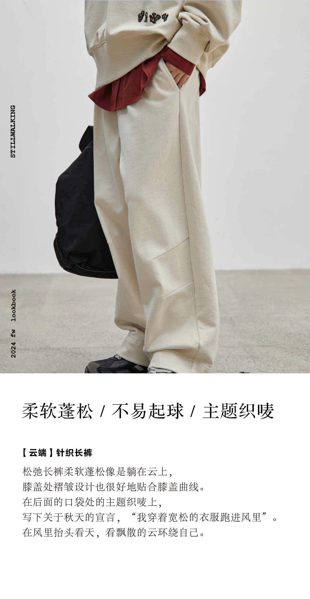 步履不停/4C43115C/慵懒拖地米白色针织长裤卫裤