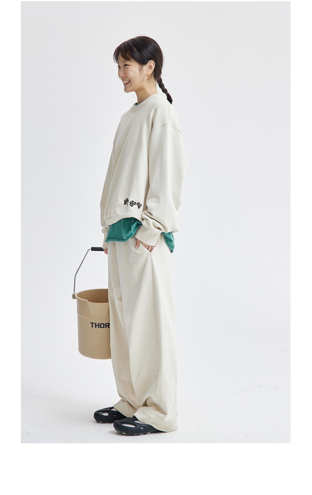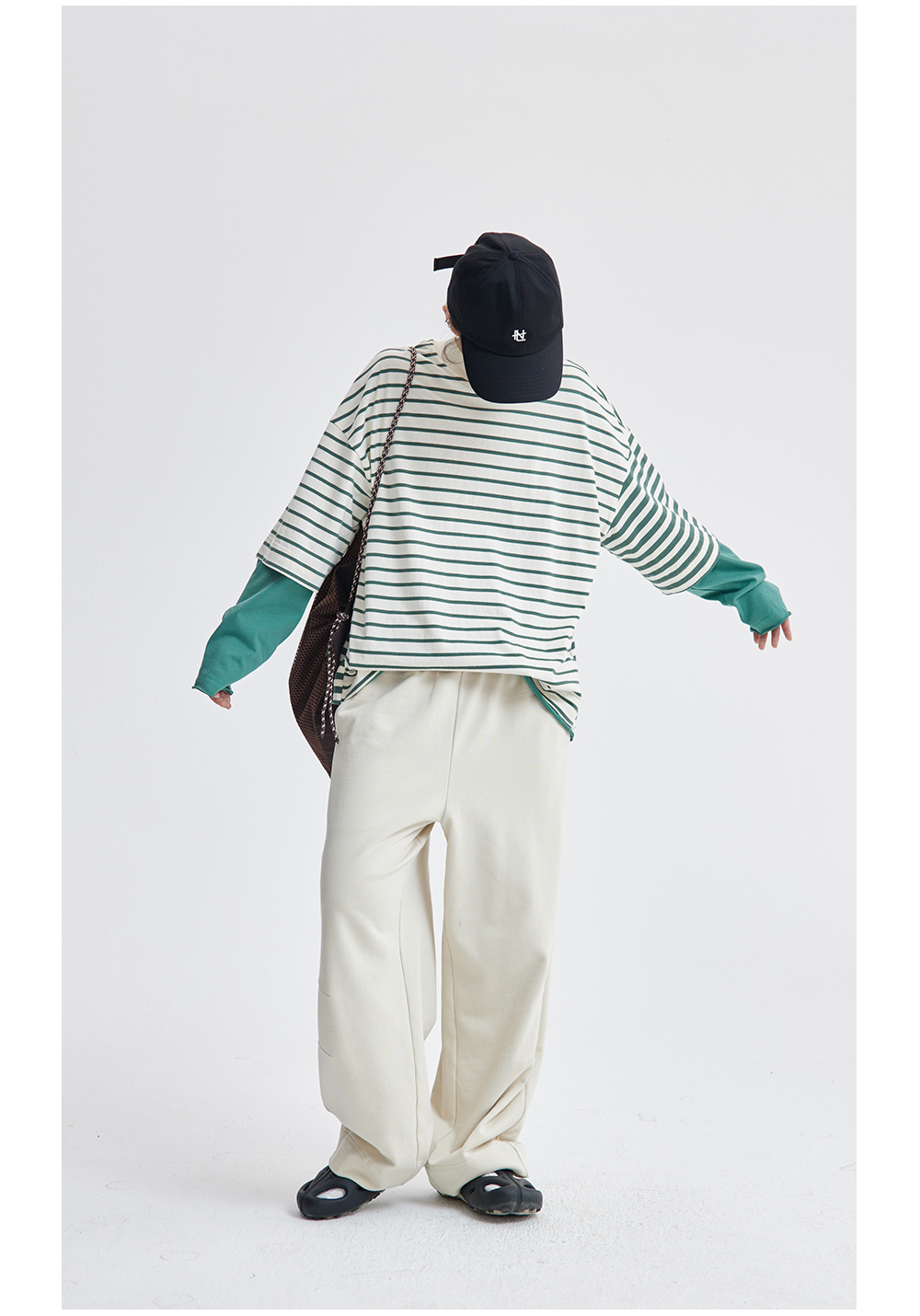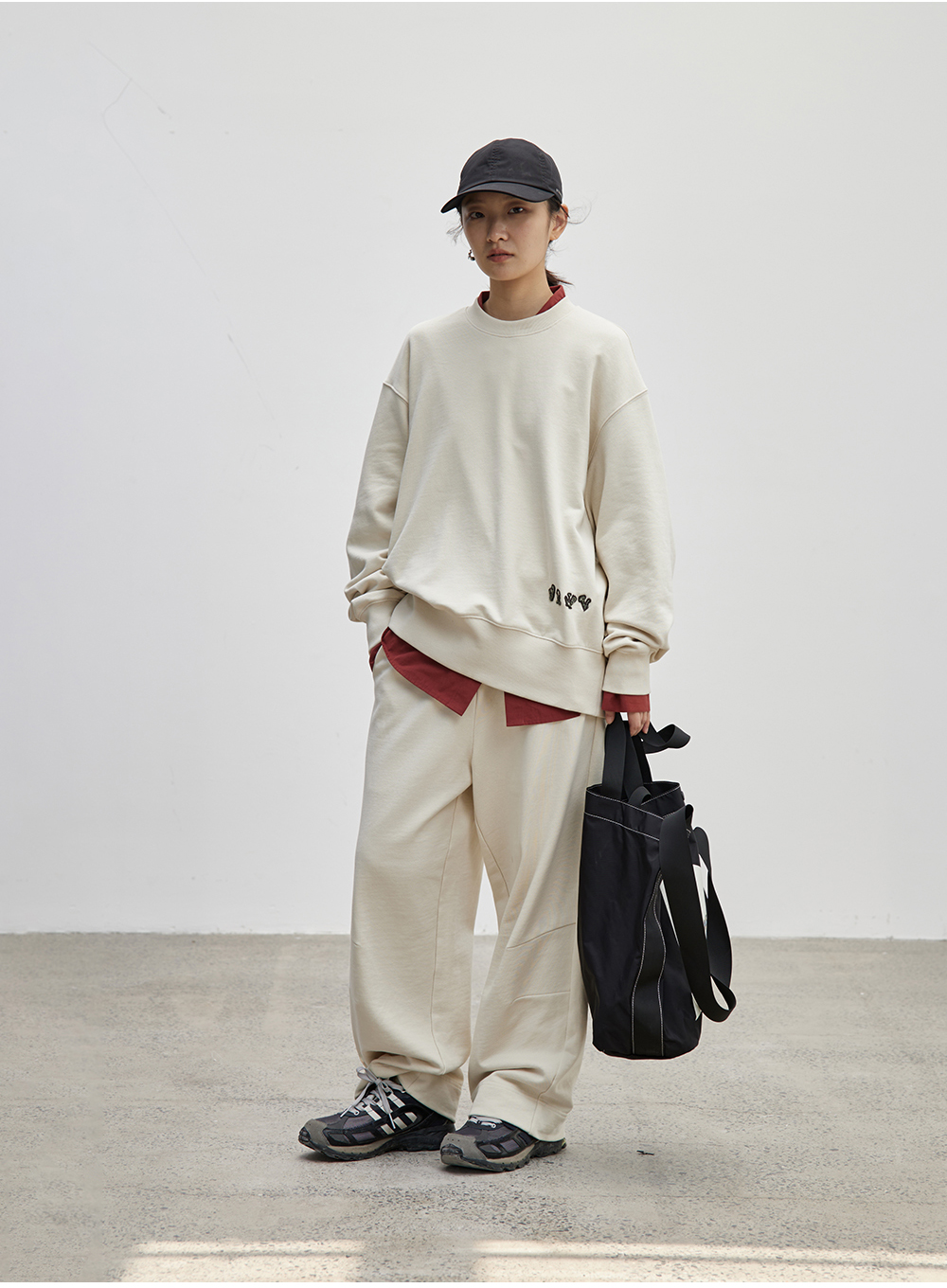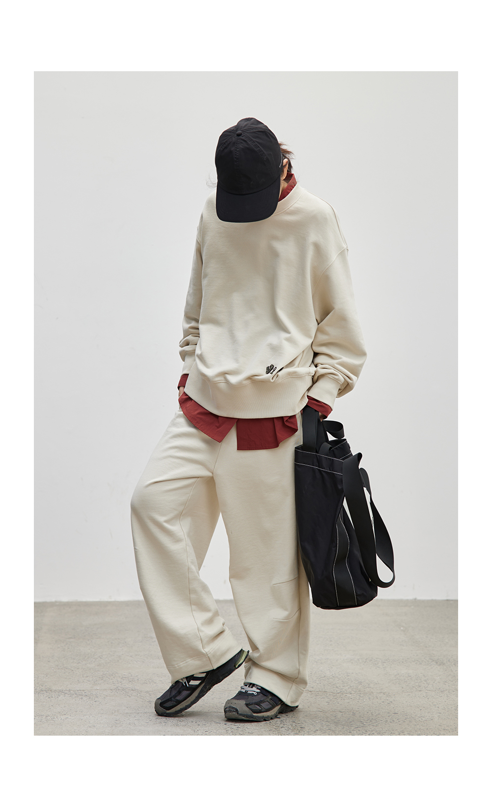 步履不停/4C43115C/慵懒拖地米白色针织长裤卫裤