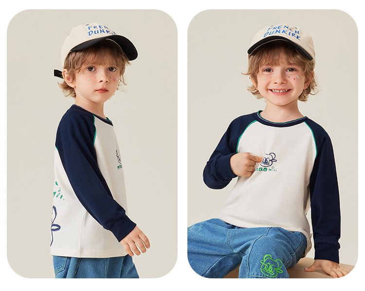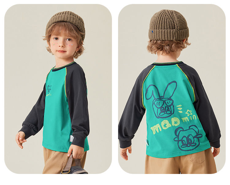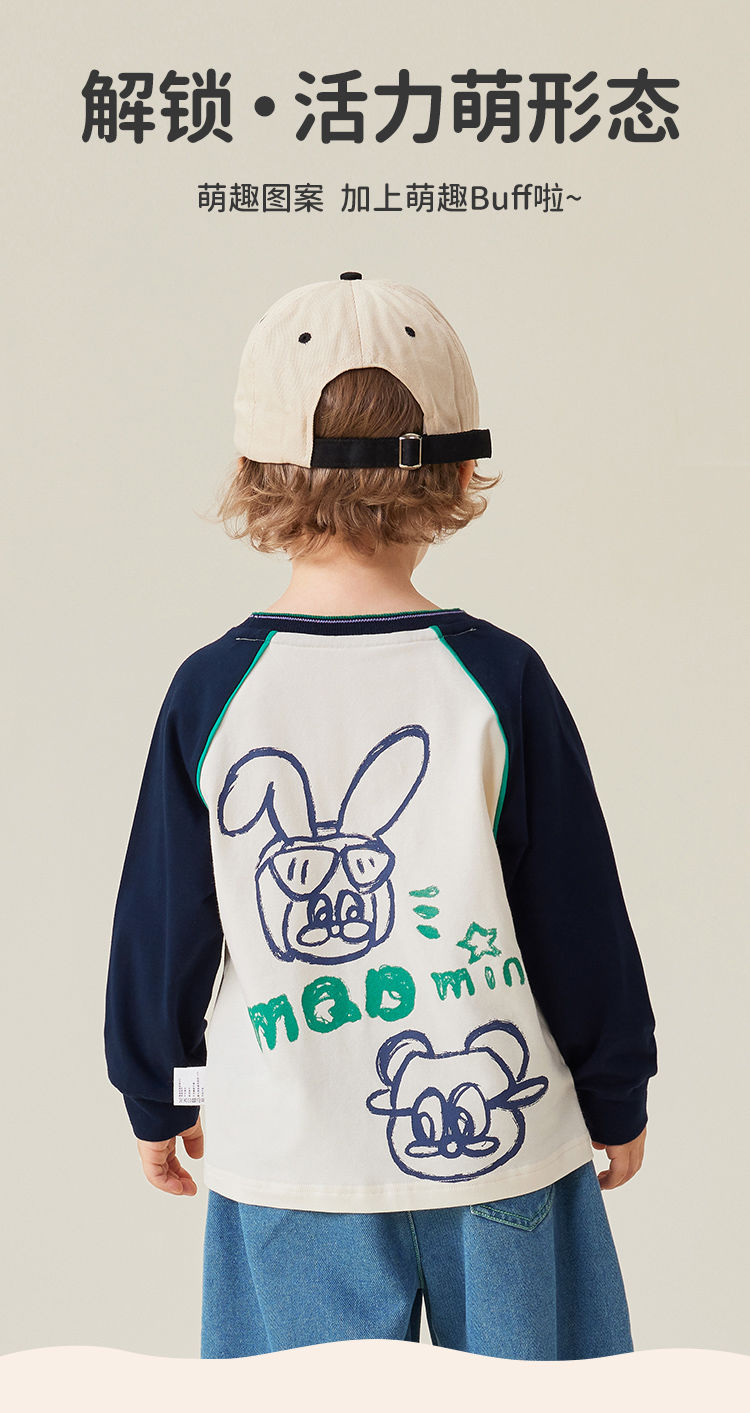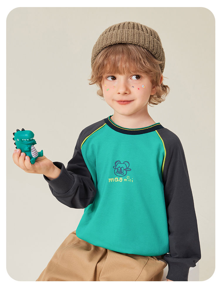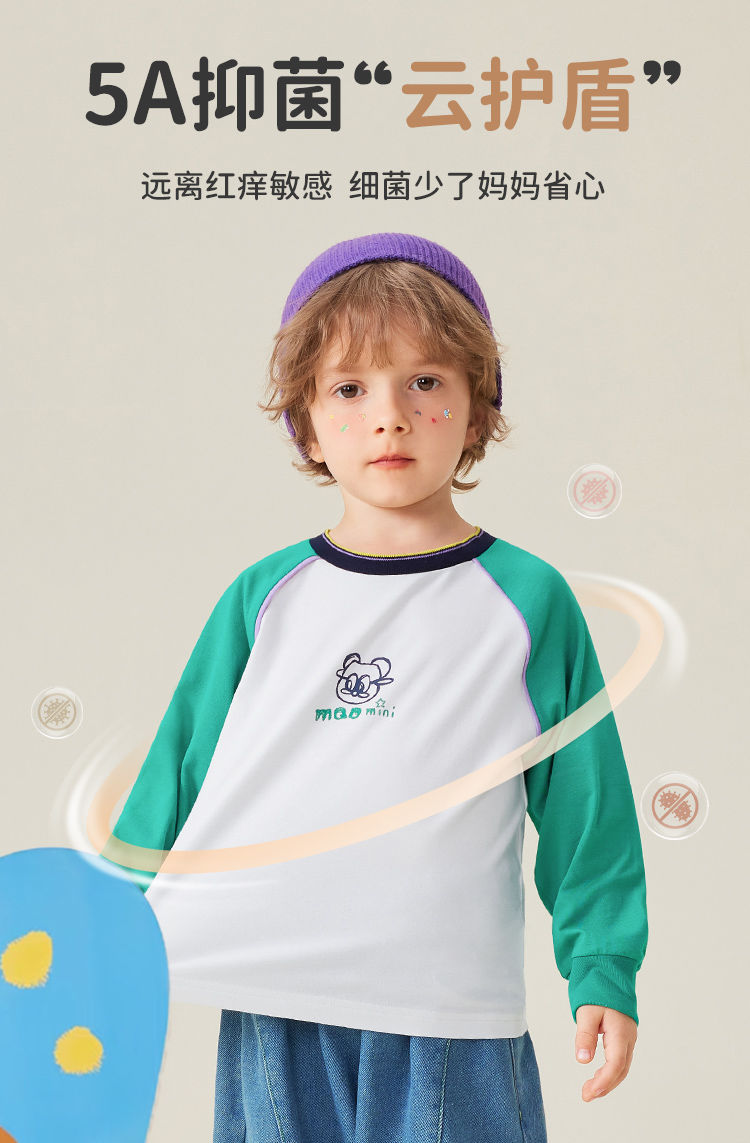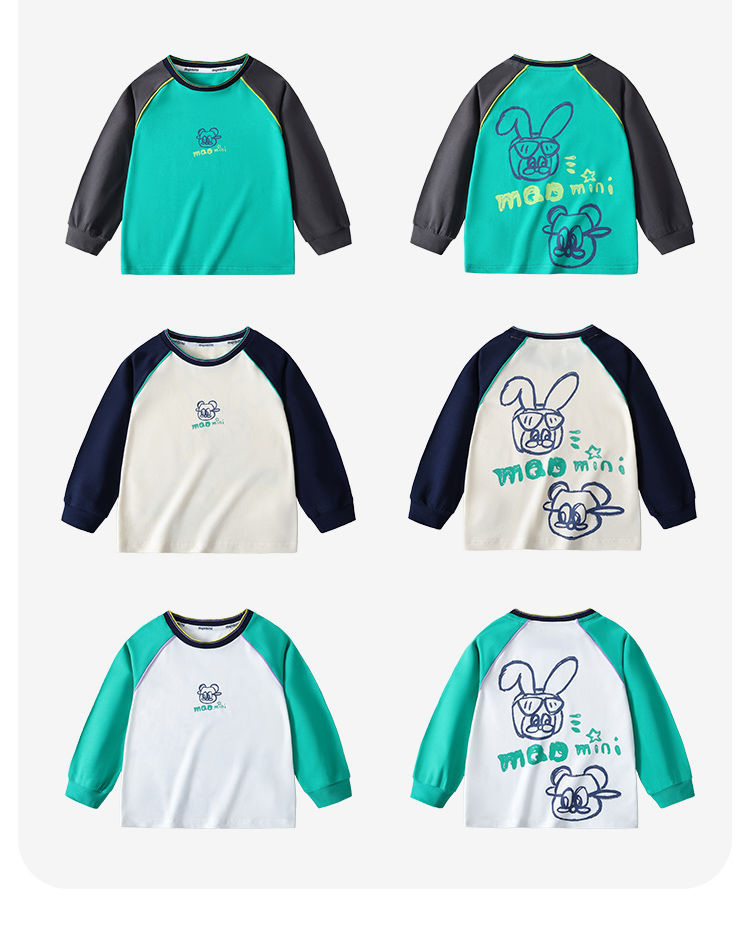 【5A抑菌】【80-140】【MQDmini】男童春秋t恤长袖卡通撞色上衣