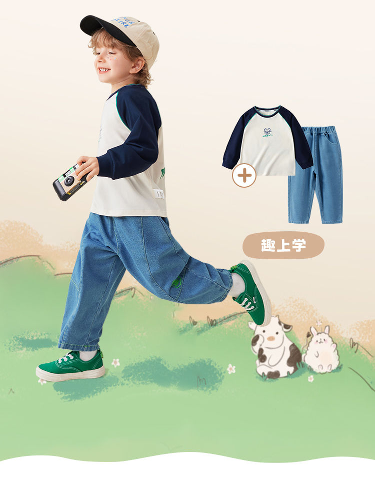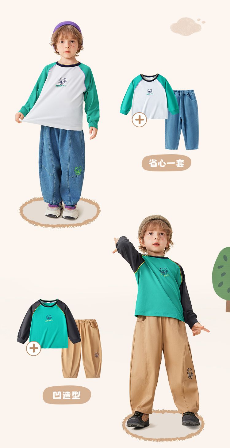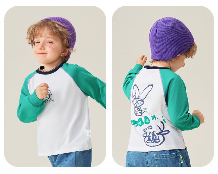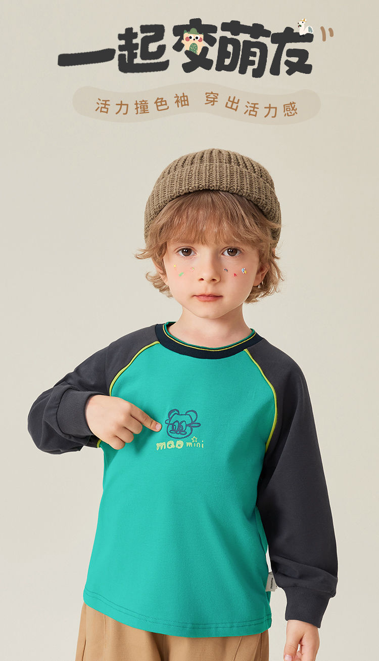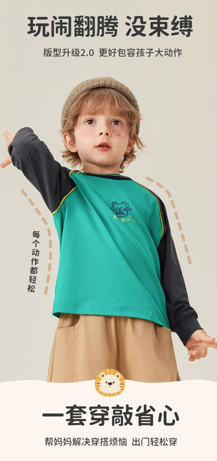 【5A抑菌】【80-140】【MQDmini】男童春秋t恤长袖卡通撞色上衣