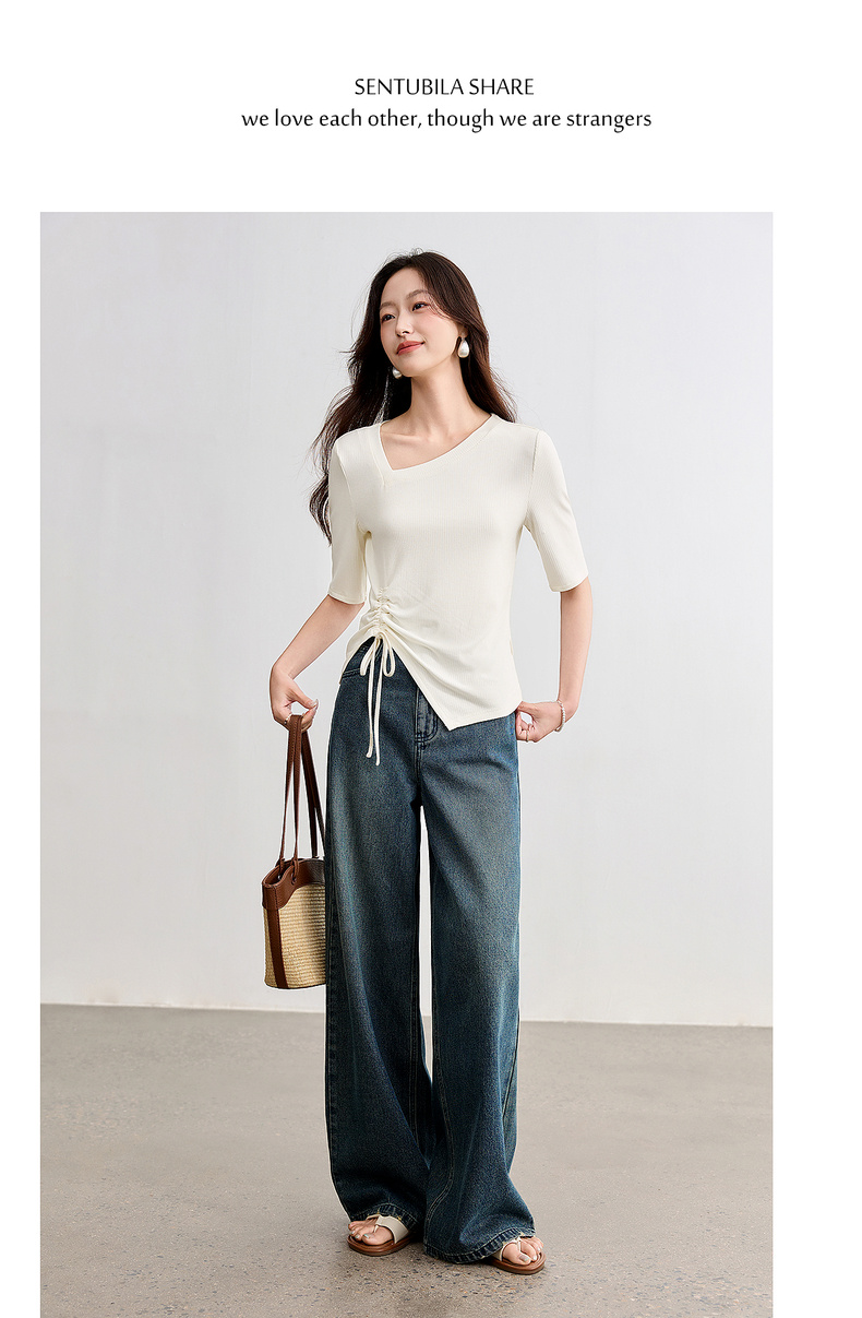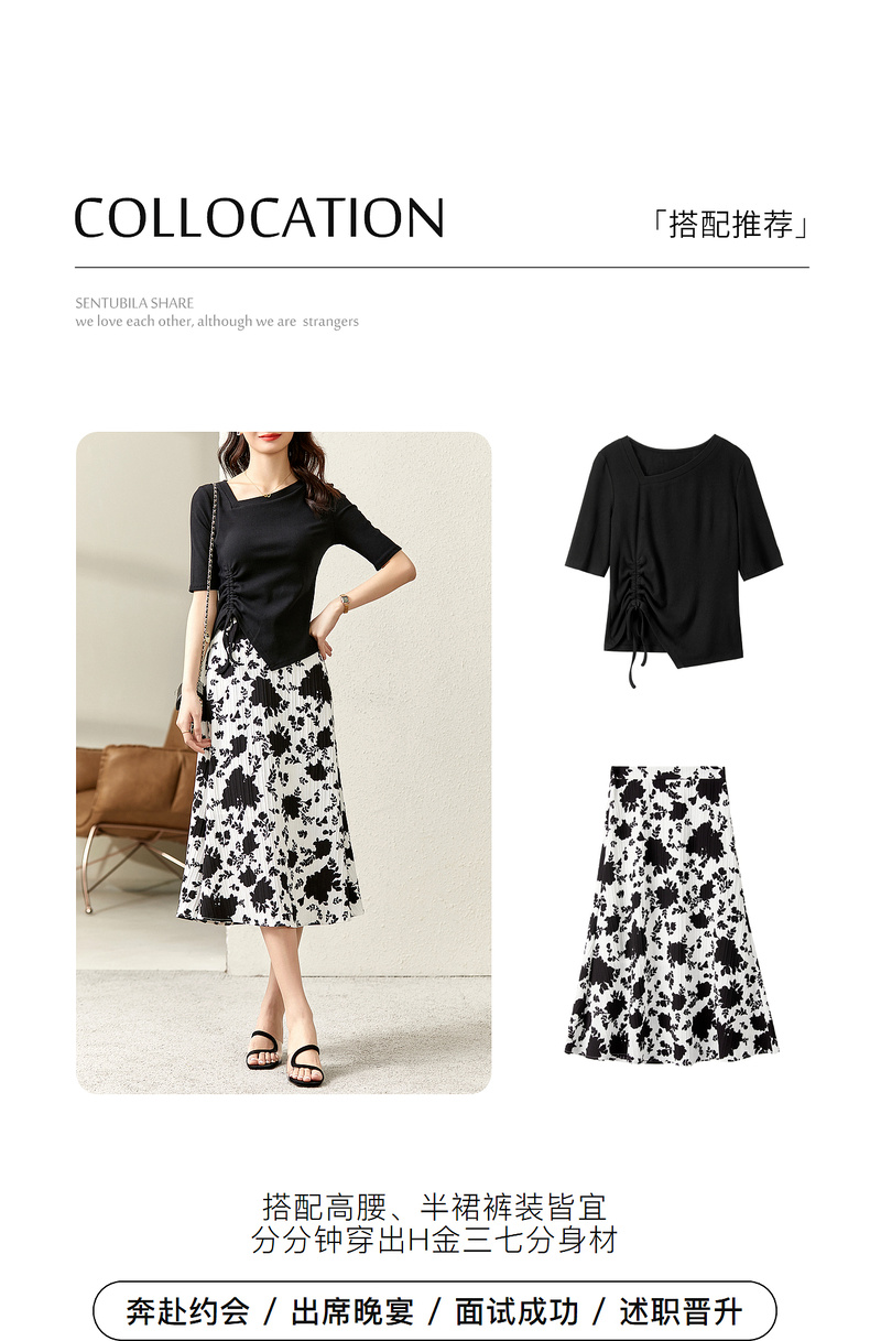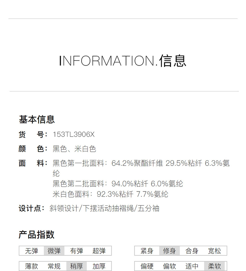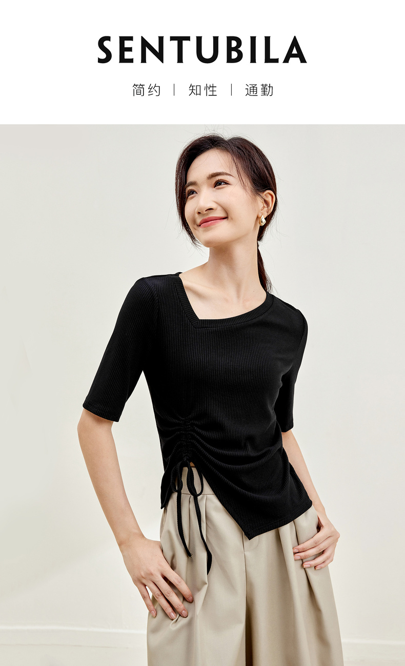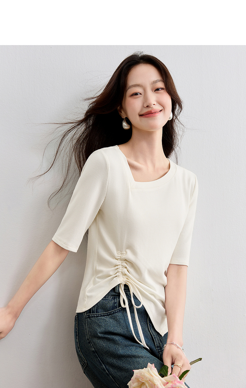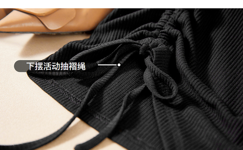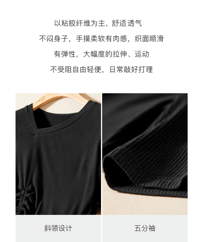 【内购】设计感的小众时尚斜领下摆抽绳设计五分袖针织衫-153TL3906X