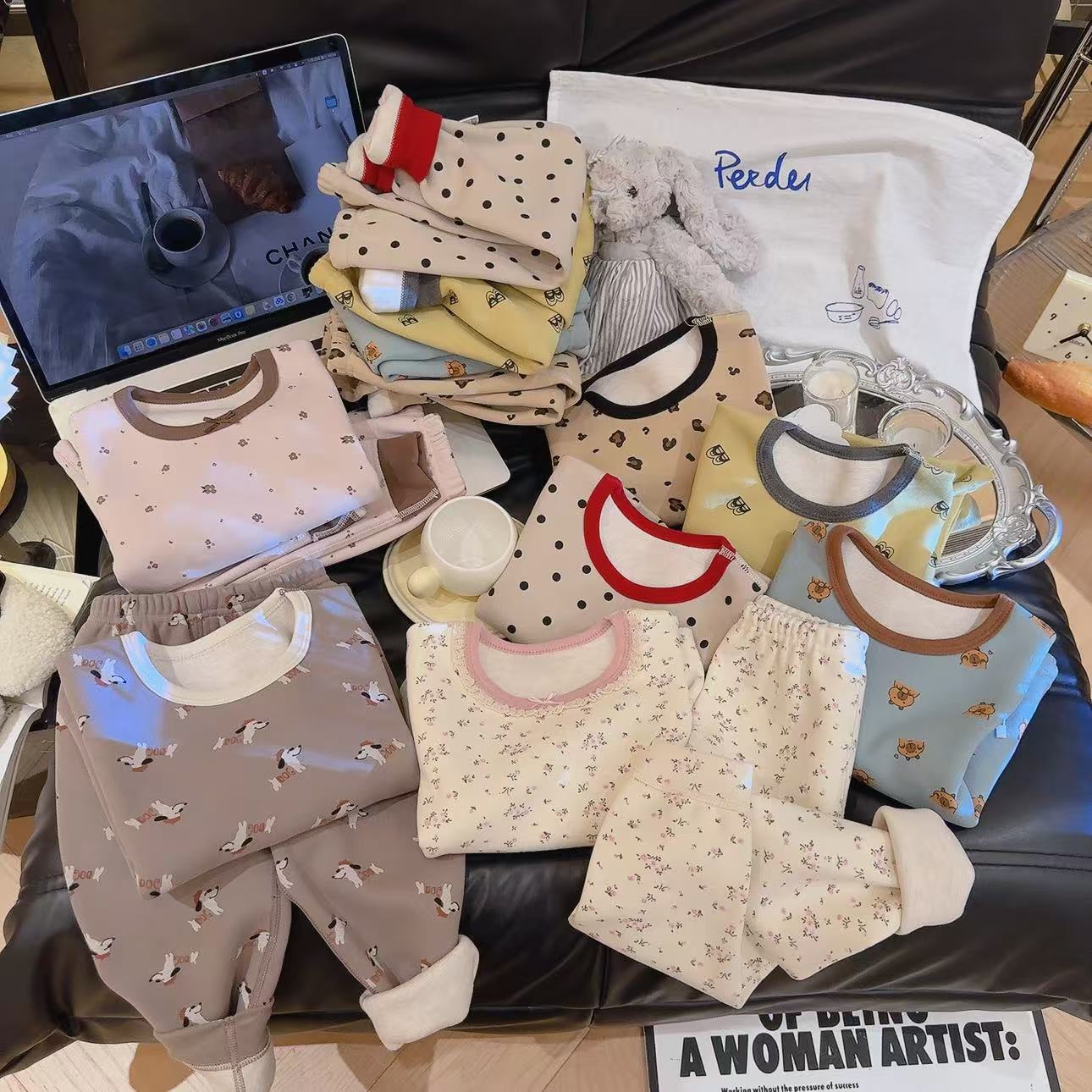 【非常厚】其其宝宝儿童保暖内衣套装无骨加厚500g羊毛蚕丝秋衣秋裤冬季睡衣聚