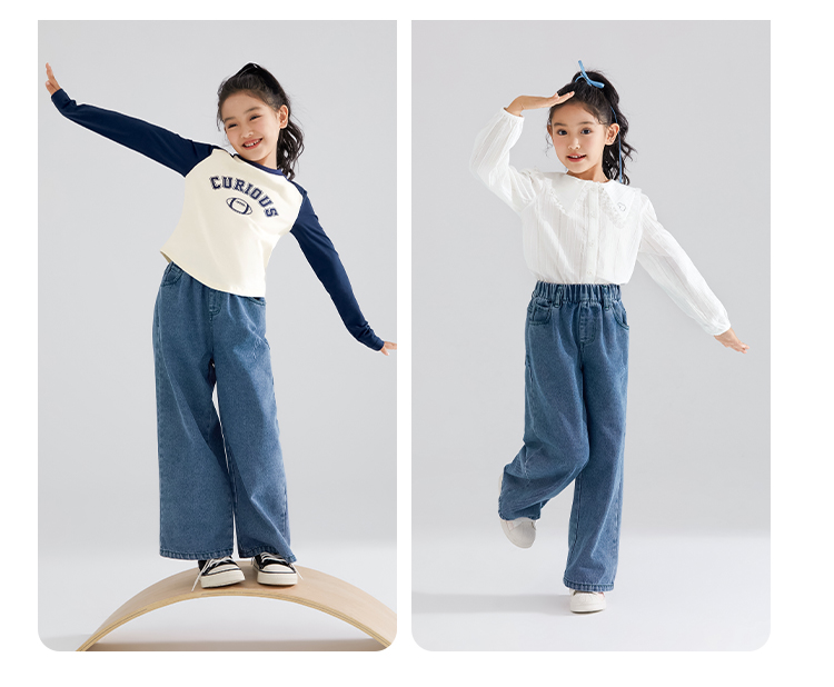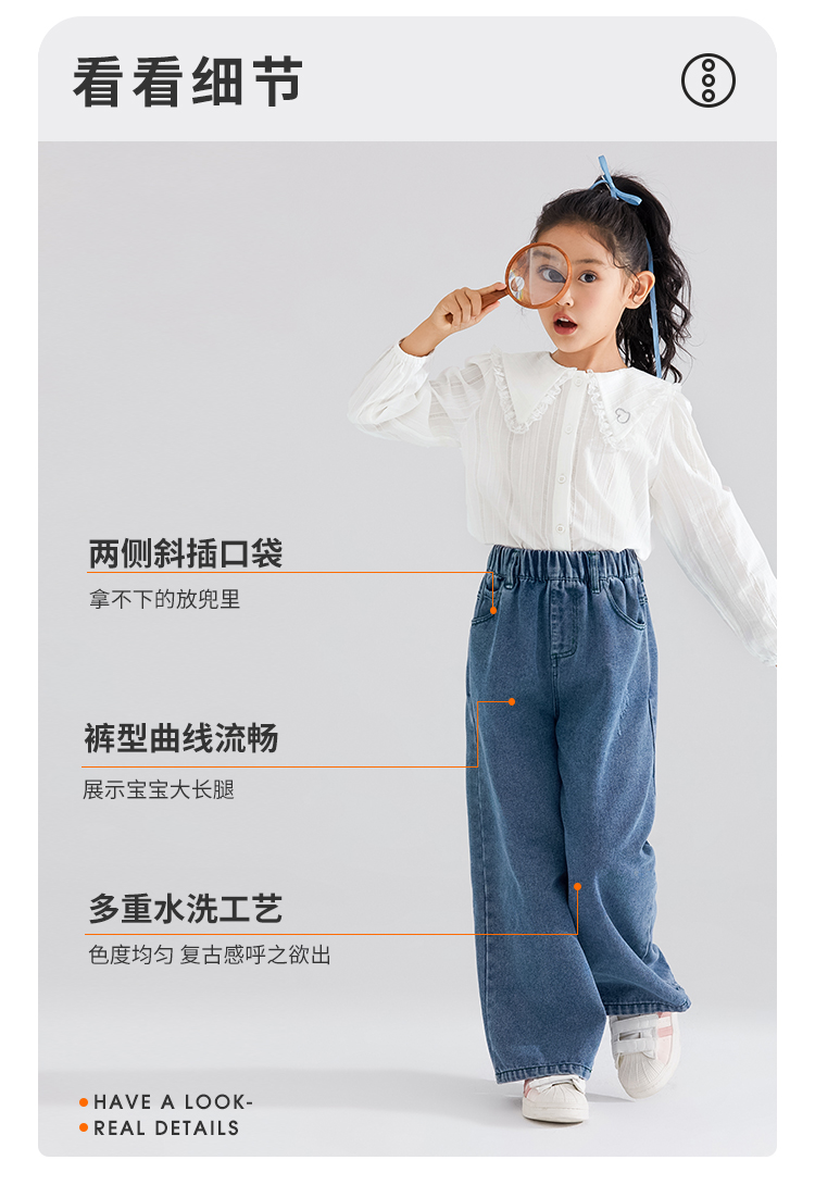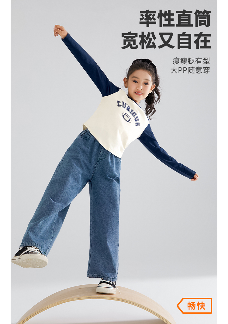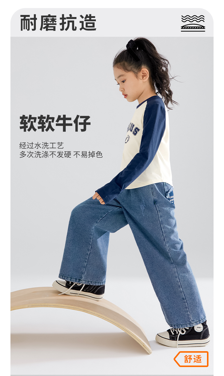 【清仓捡漏】【120】【可可鸭】女童春秋牛仔裤儿童裤子阔腿裤