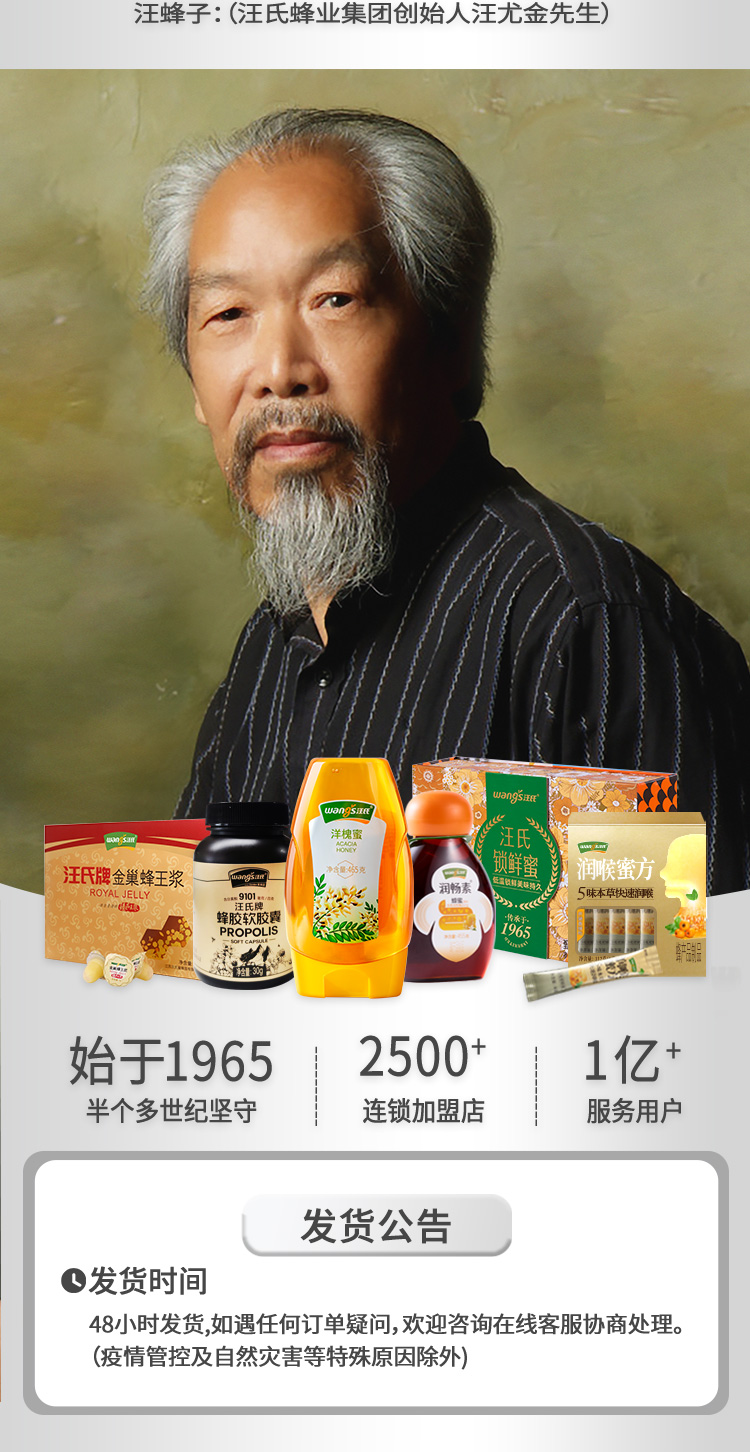 【汪氏】冰纯椴树蜜250g蜂蜜0脂肪无添加结晶蜂蜜官方正品纯蜂蜜