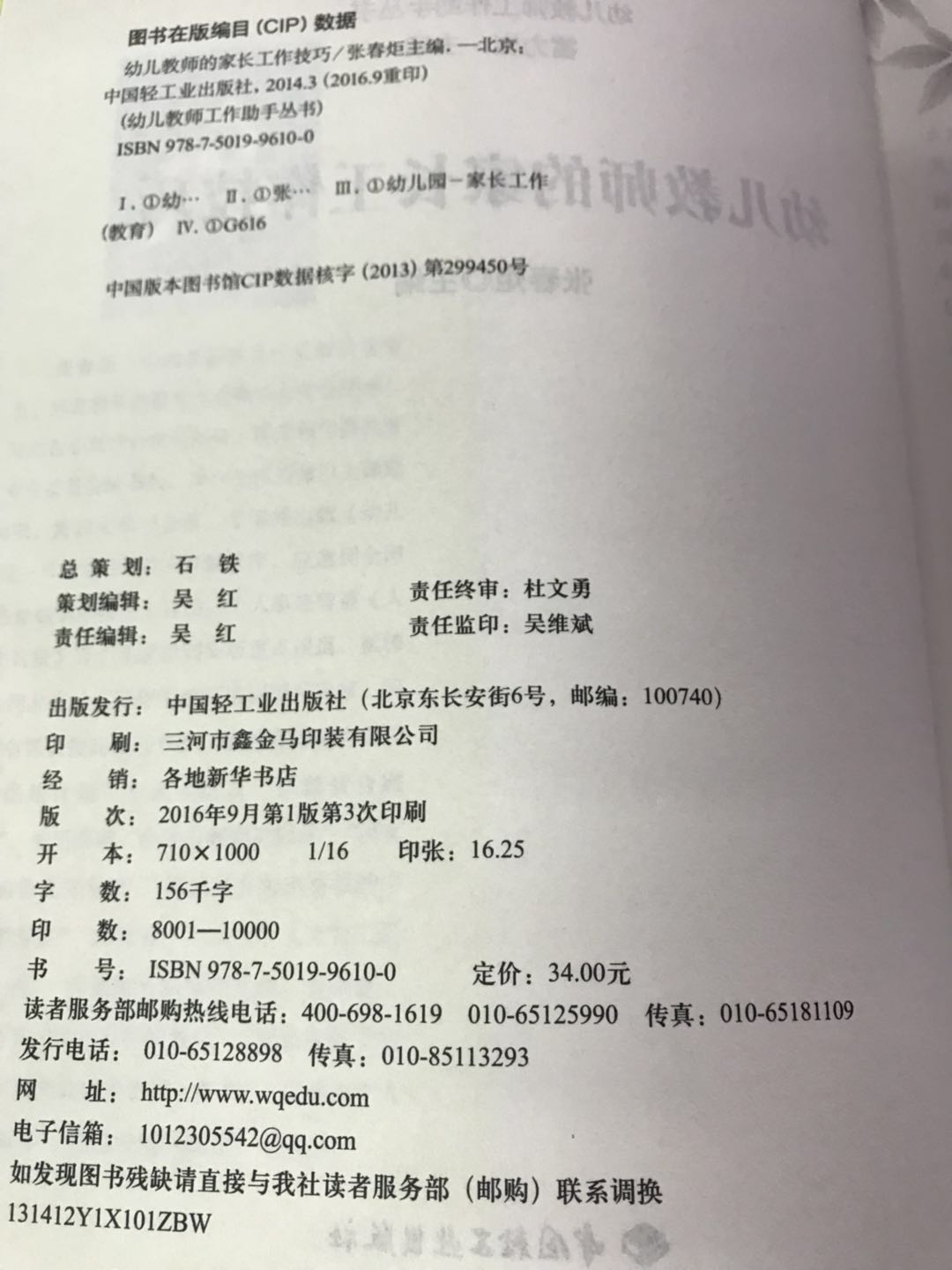幼儿教师的家长工作技巧 张春炬 中国轻工业出版社