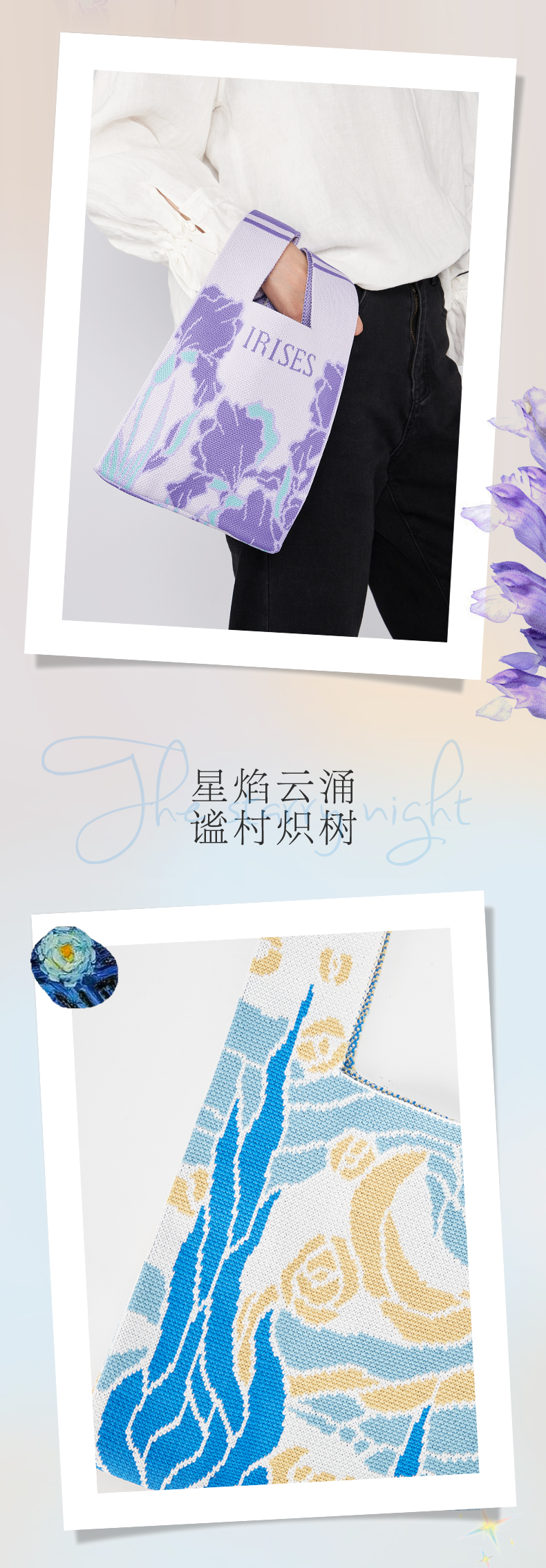 物兮物 致敬大师系列 鸢尾花 星空 针织手挽包