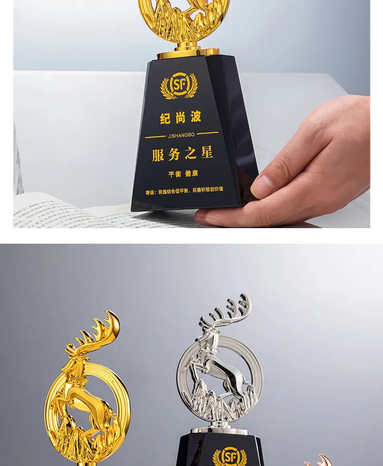 新款金属水晶奖杯定制年会优秀员工颁奖创意金银铜订制周年纪念品 · 款式1