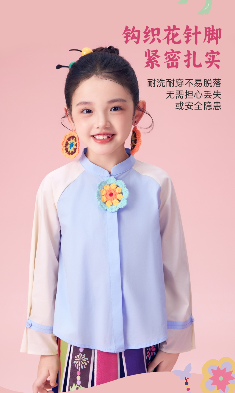 年衣25秋季新款女童中国风撞色长袖新中式打底衬衣花火虹心衬衫