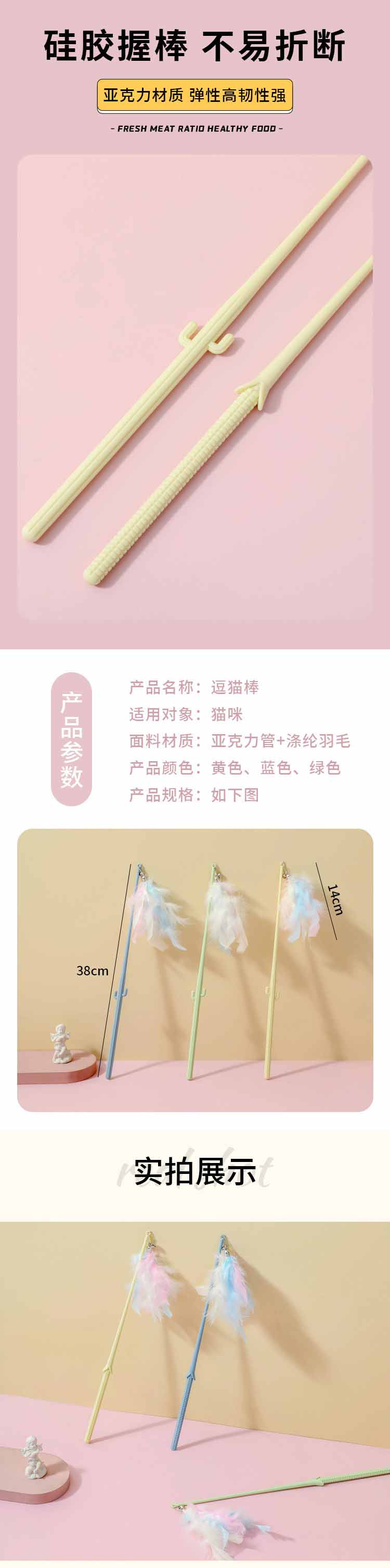 新款仙人掌/玉米逗猫棒猫玩具 彩色羽毛+铃铛【拍组合装更划算】