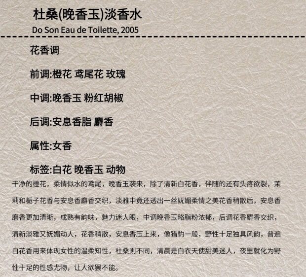 我个人闻起来 清甜 层次感并不明显 晚香玉夹杂着茉莉香气 温柔又很知性