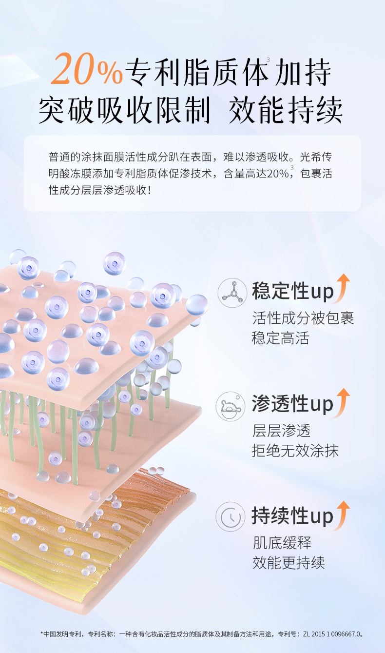 - 护肤新理念,吸收是关键。光希Lightenwish,科技护肤领先者。脂质体纳米微球,活性成分透皮吸收,直达肌底高效养肤。遇见光希,封存美丽。