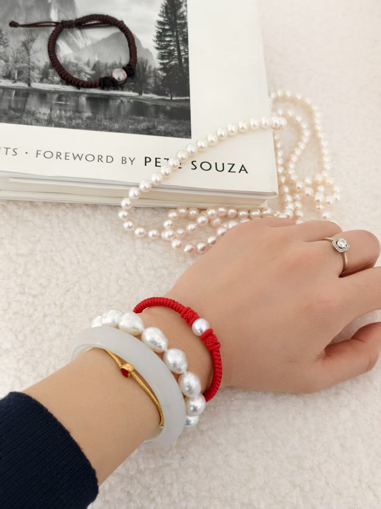 【新年珍珠手串】红色Akoya珍珠手串(15+4cm长度)