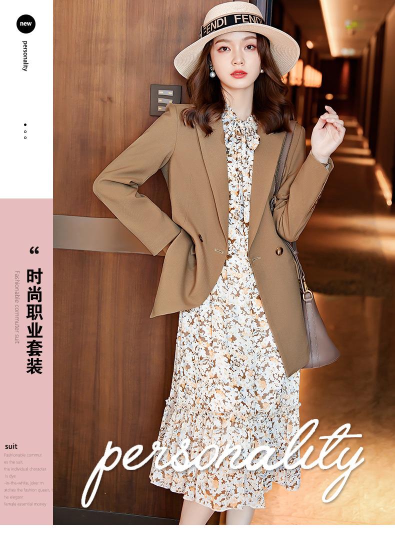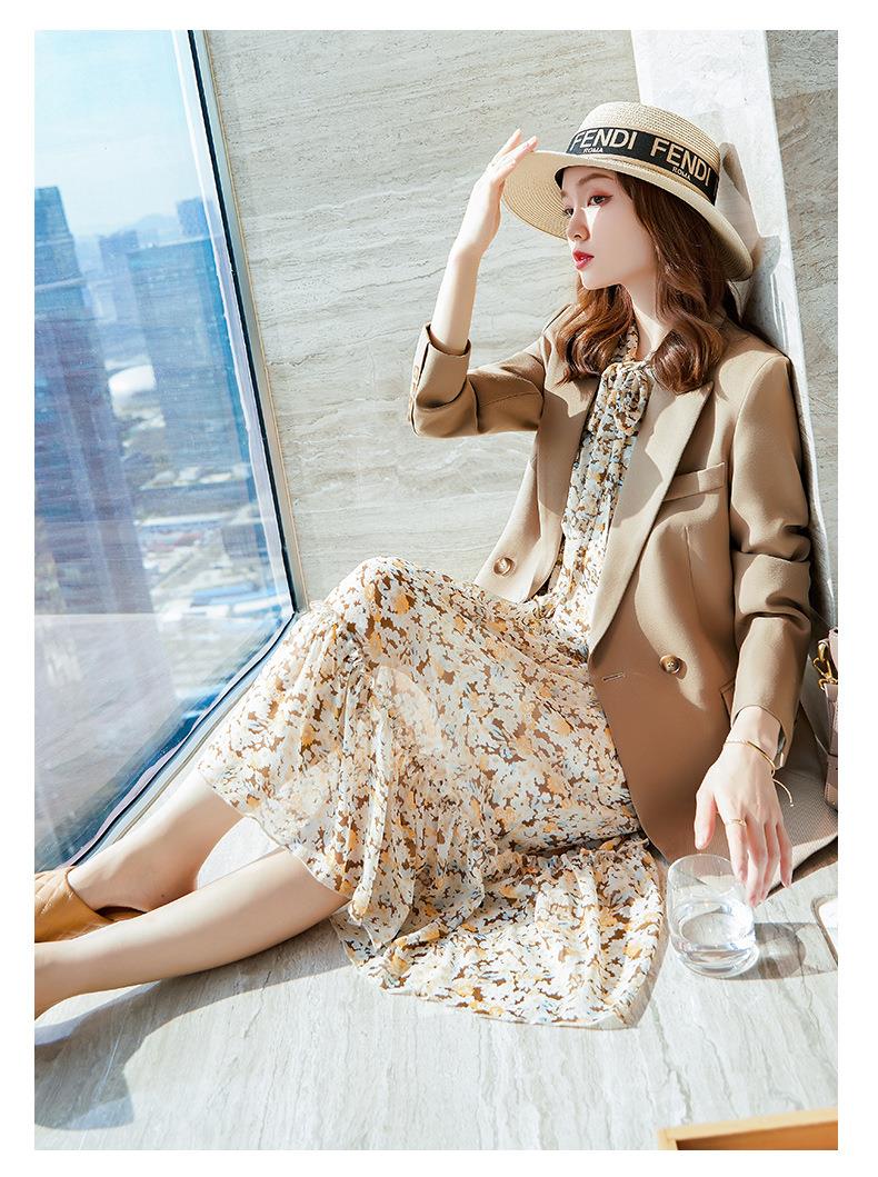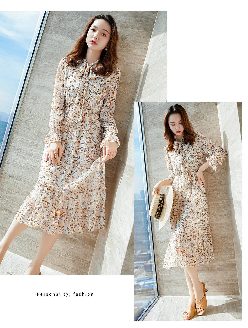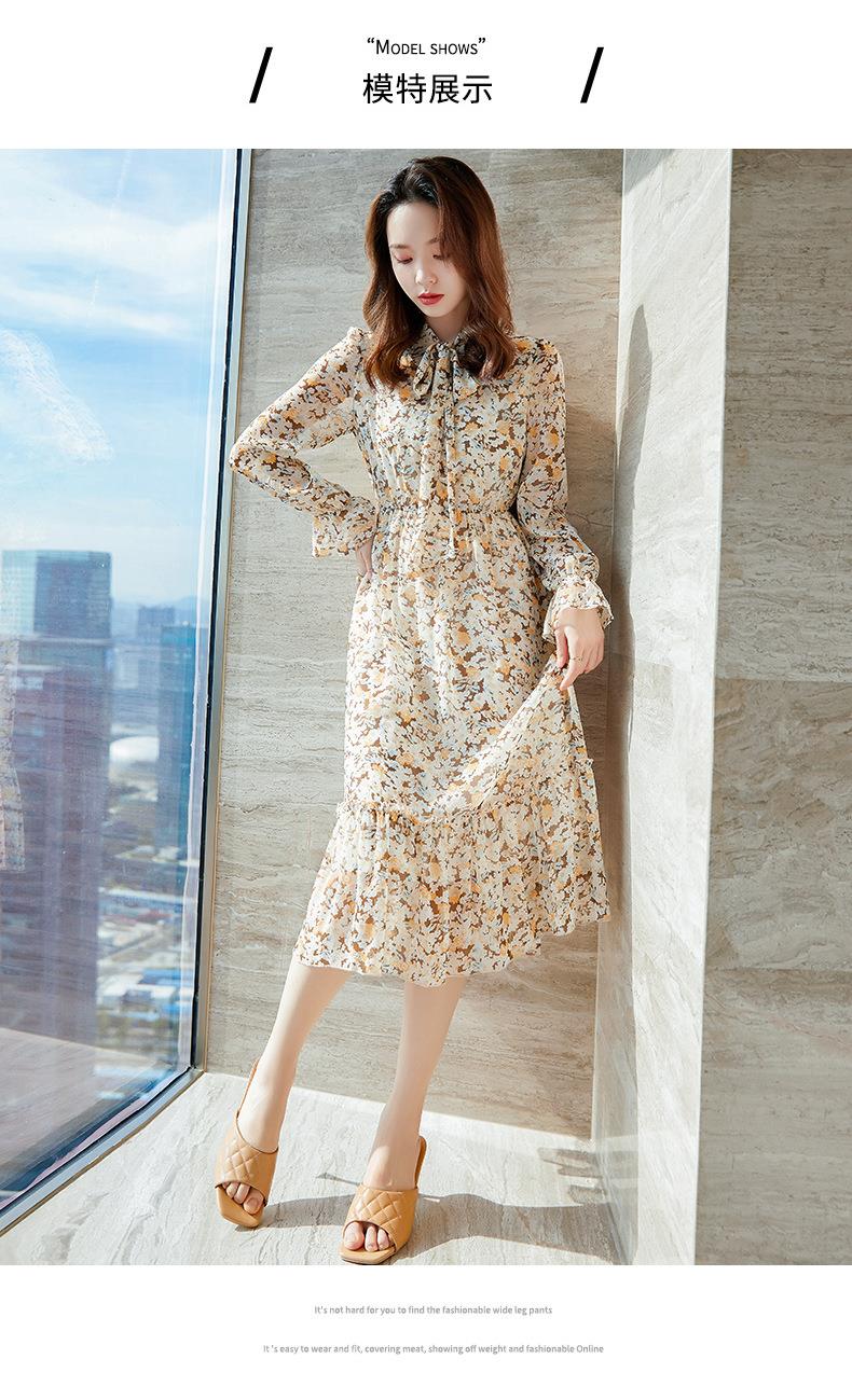 娜璐多 碎花连衣裙女2023春秋新款法式茶歇裙雪纺长袖收腰气质温柔A字裙