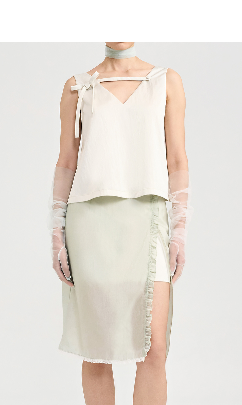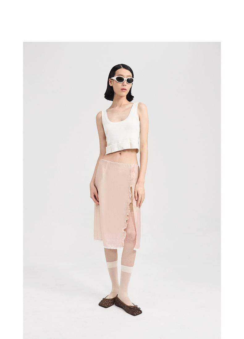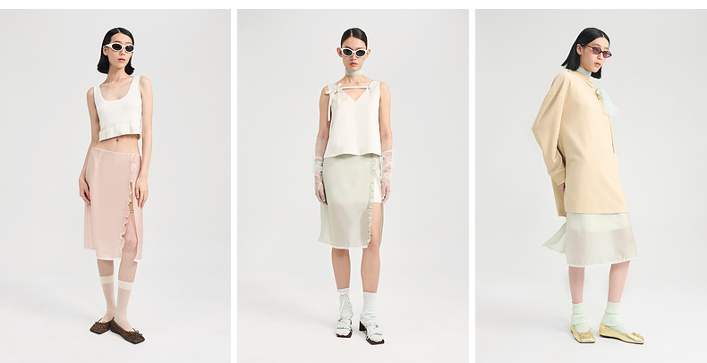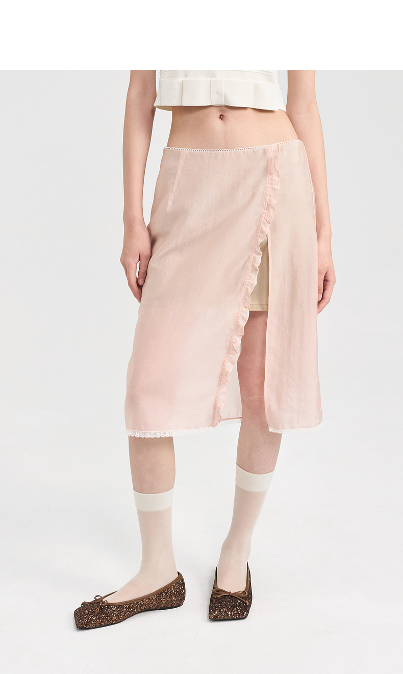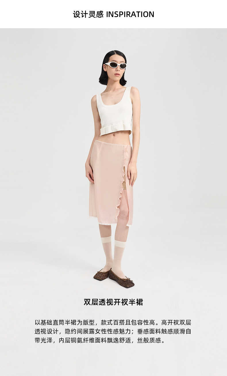 [捡漏价]lost in echo2024夏季新款薄荷曼波直筒双层透视开衩半身裙短裙女
