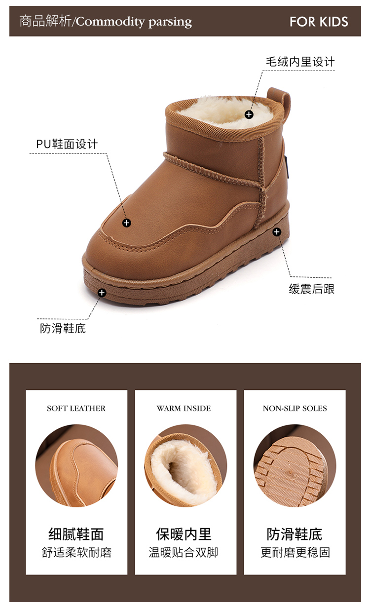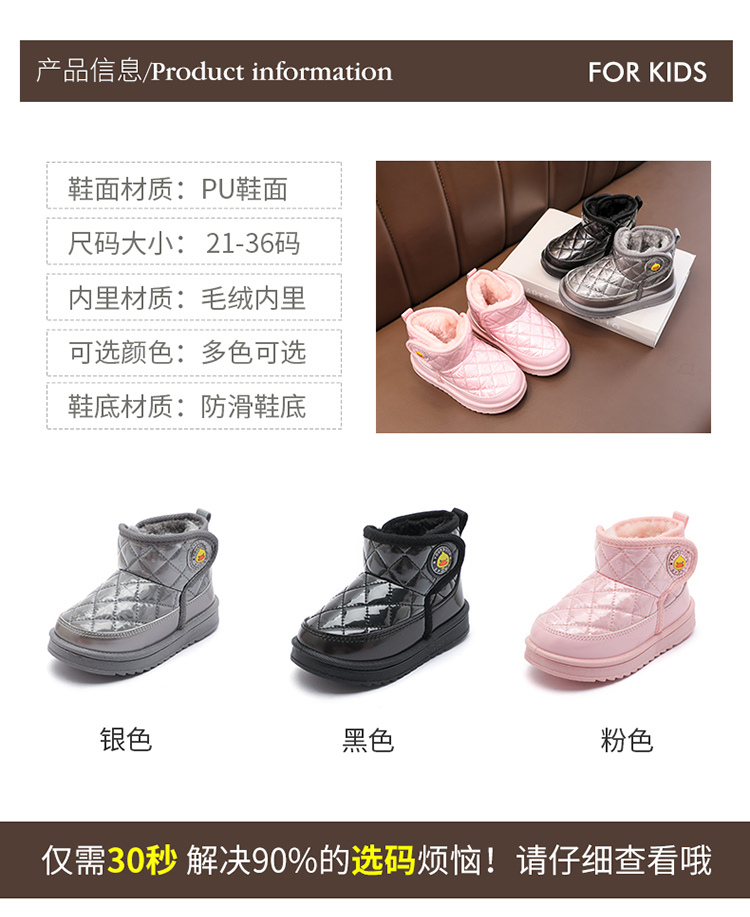 【📣卷起来39.9-49.9/双】21-36码冬季儿童雪地靴男童女童加绒短靴加厚保暖童鞋宝宝棉新款靴子聚