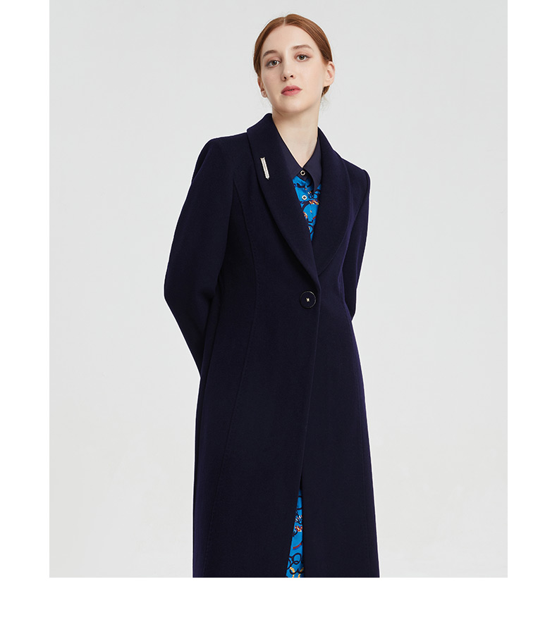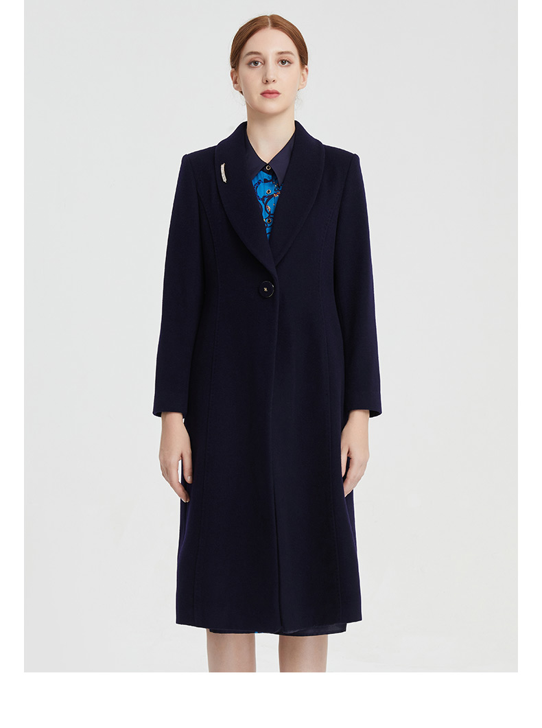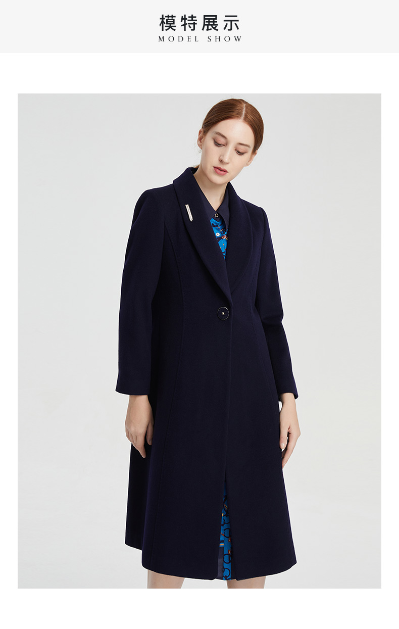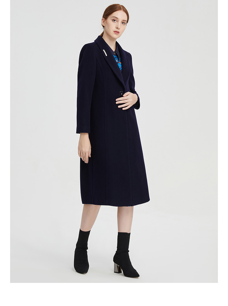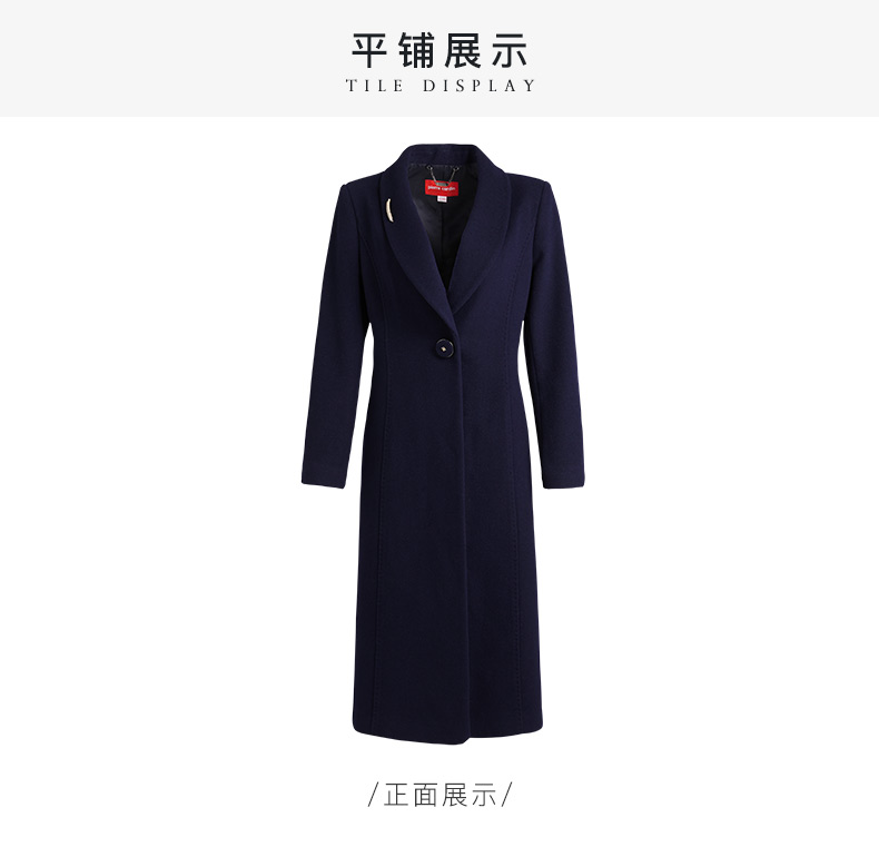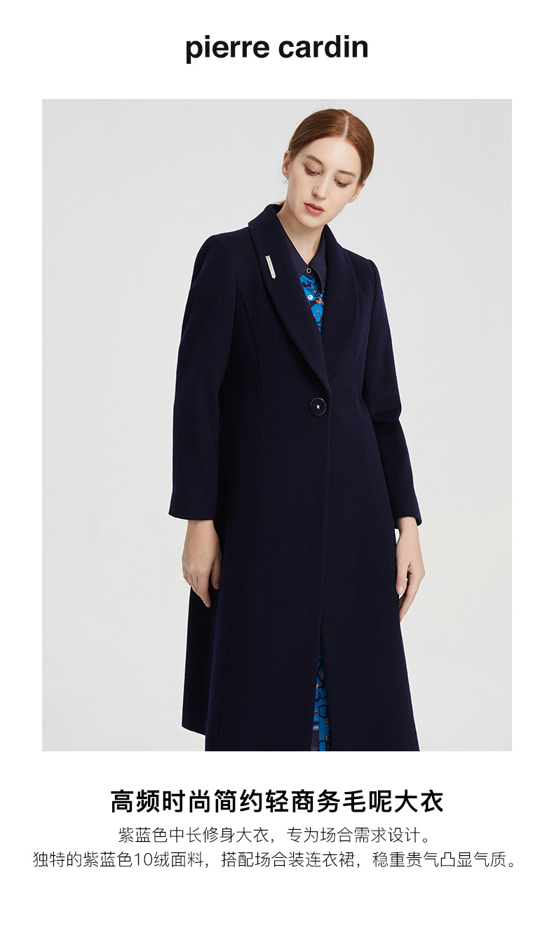 皮尔卡丹女装大衣长款含羊绒翻翻领商务通勤毛呢外套P1453C1998N0