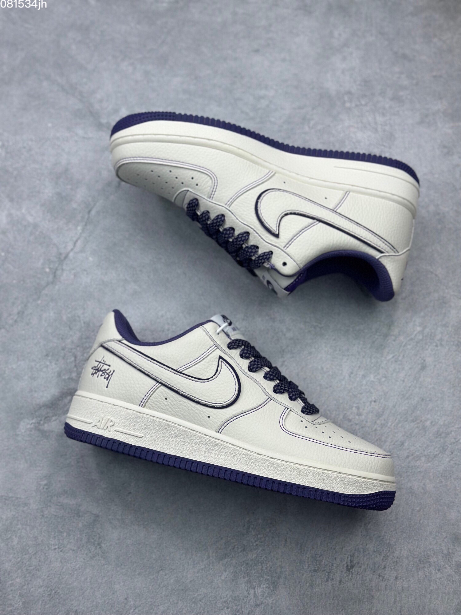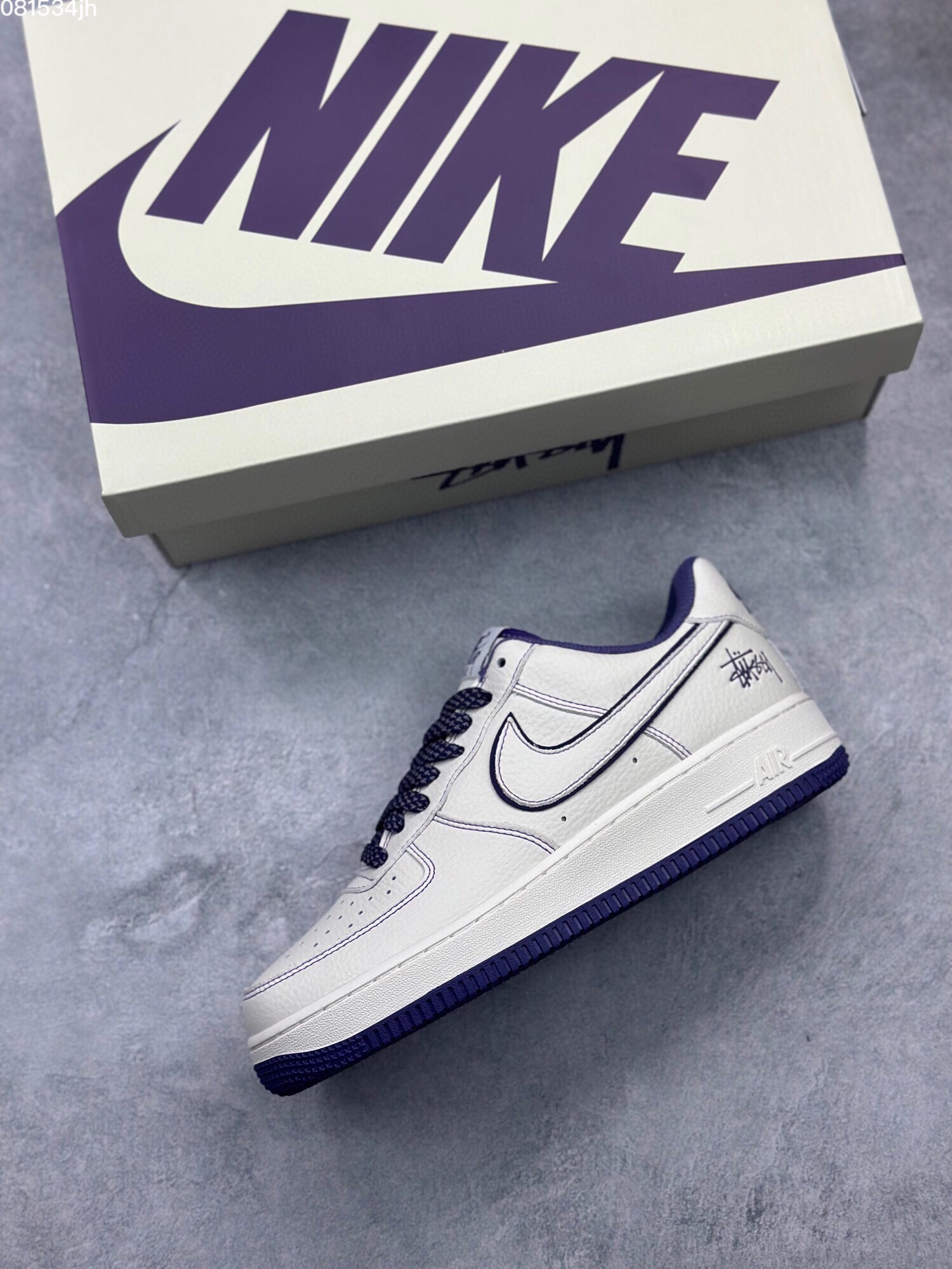 夏季特惠💰430 海外限量发售 公司级 Stussyx Nike Air Force 1 Low 斯图西联名 军紫色反光空军一号低帮休闲板鞋 客供高亮3M反光 定制皮料 折边针车 工艺难度大 原楦头原纸板 内置全掌气垫