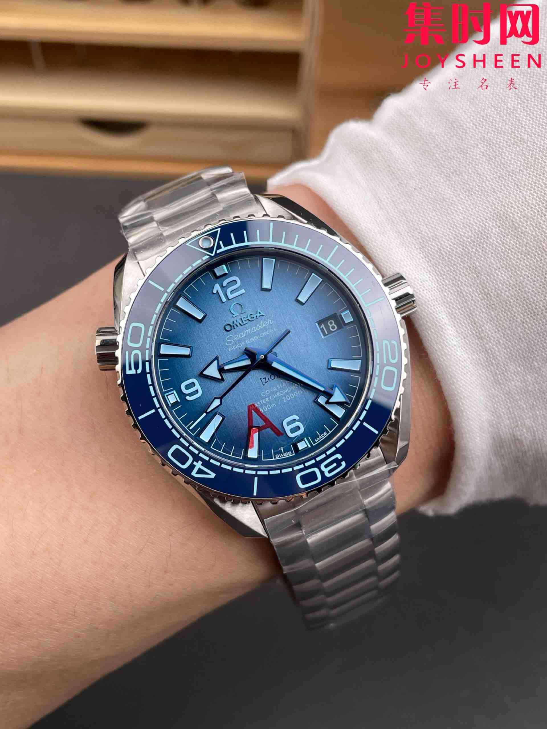 VS欧米茄海马600米系列 海洋宇宙 海马75周年 夏日冰蓝款 男士腕表 8800一体机 表径39.5mm 渐变蓝表盘设计独具匠心,蓝色由浅入深的层次变化,巧妙象征着海洋从表层到深处的不同景致。在阳光照射下,独特清爽的冰蓝色盘面更显熠熠生辉,视觉质感出众。