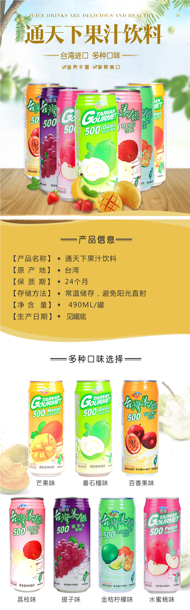 台湾美饌百香果汁 490ml 罐装休闲饮料品