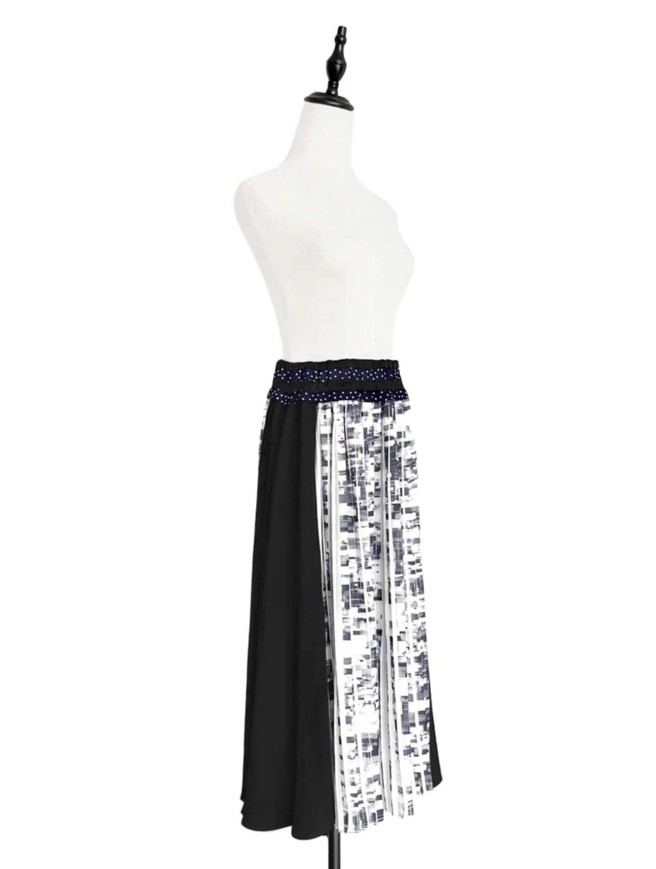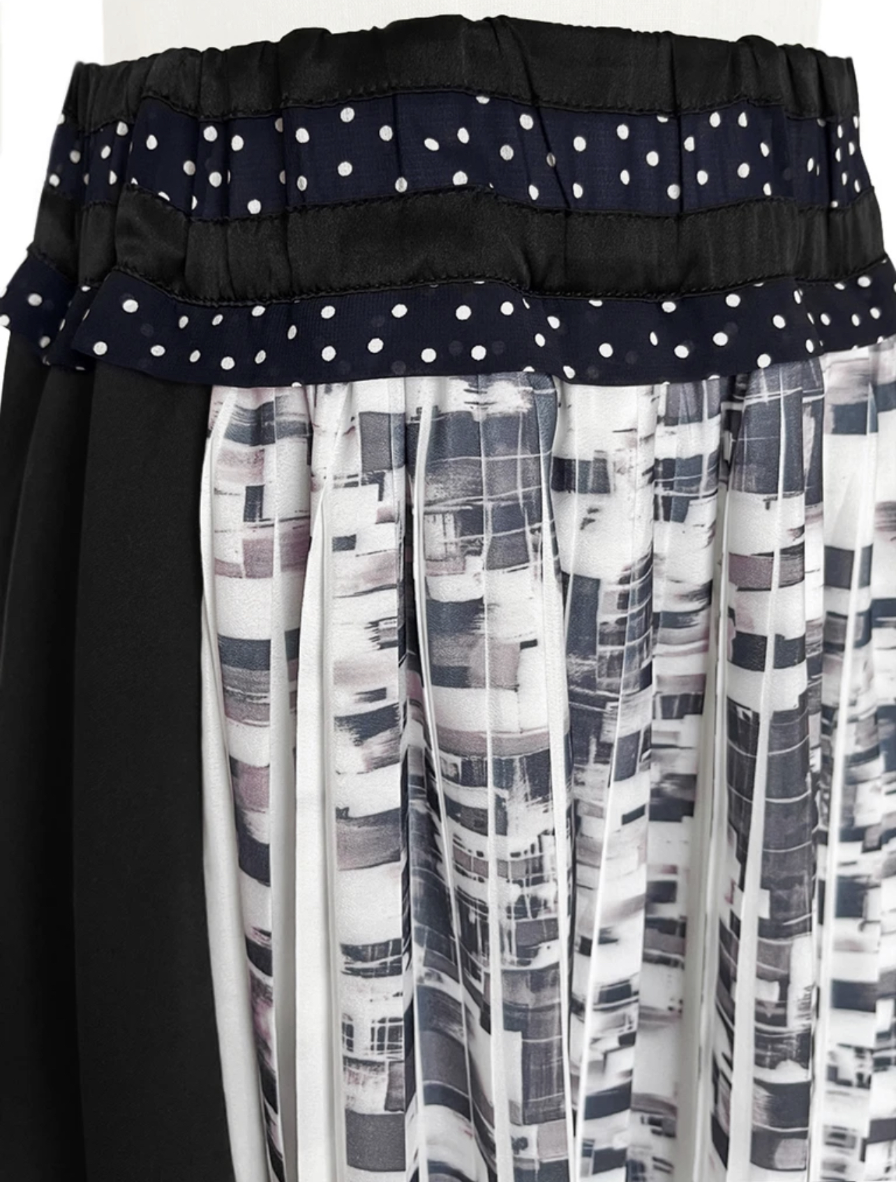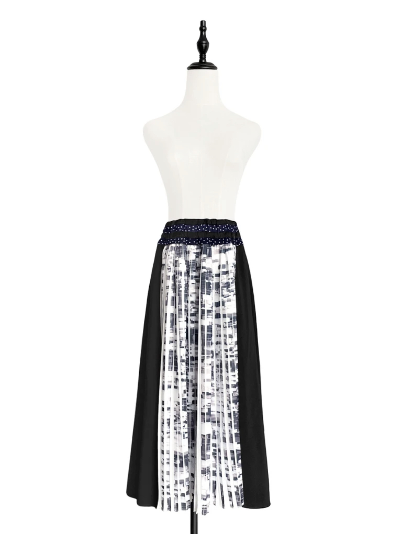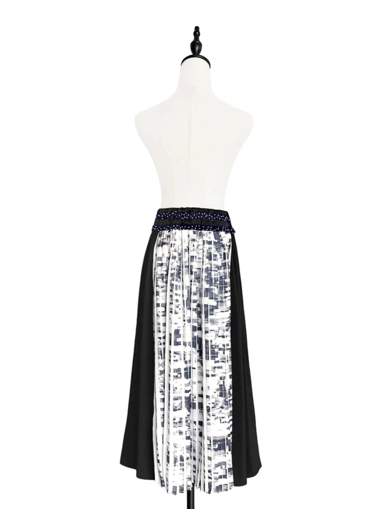 TYNVIE 百褶拼接高腰半身裙 - 蓝色印花