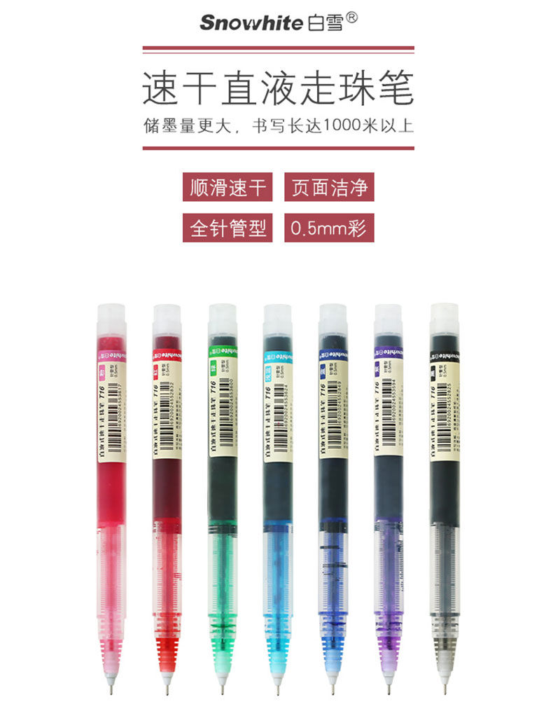 【唤起少女心,白雪彩色直液走珠中性笔】针管式白雪直液走珠笔彩色中性笔套装学生小清新糖果色可爱水笔速干笔