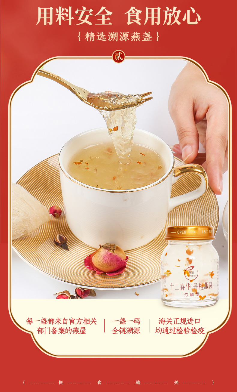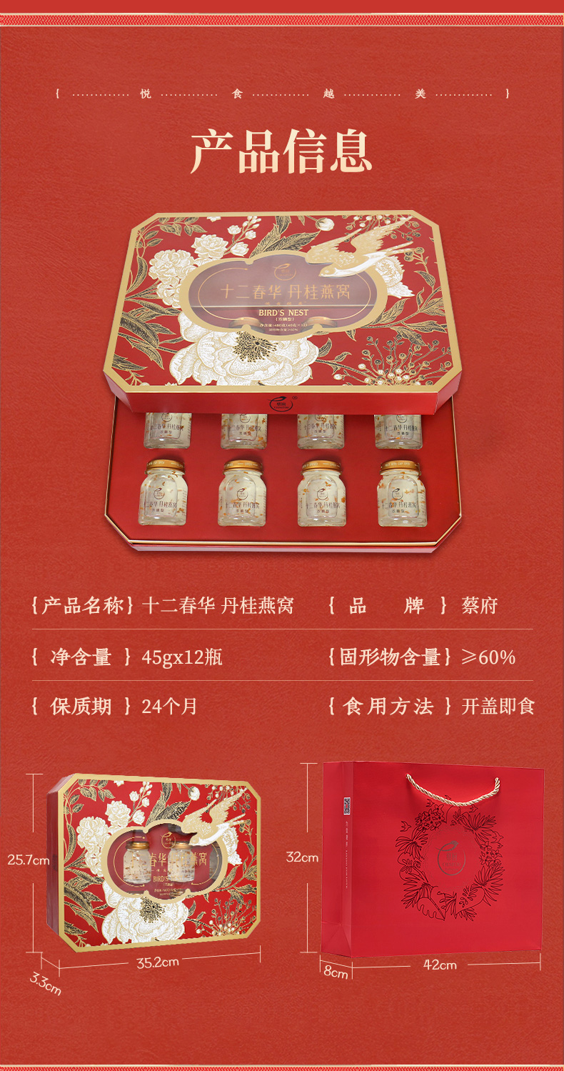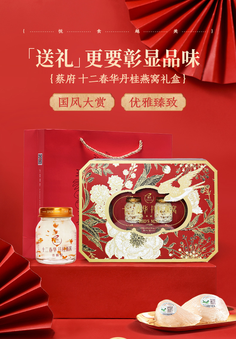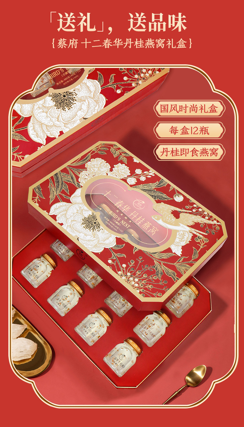 【蔡府甄选 鲜炖燕窝】 丹桂冰糖即食燕窝礼40克*12瓶国风礼盒装【十二春华】