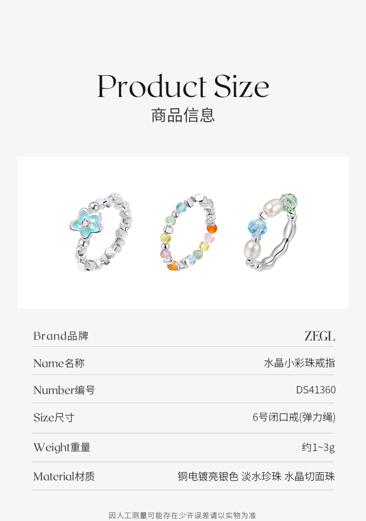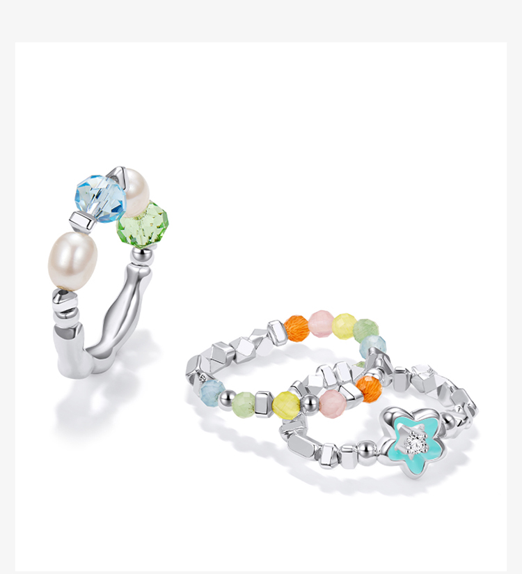 ZEGL设计师多巴胺小彩串淡水珍珠戒指女生彩色串珠碎银子食指戒子