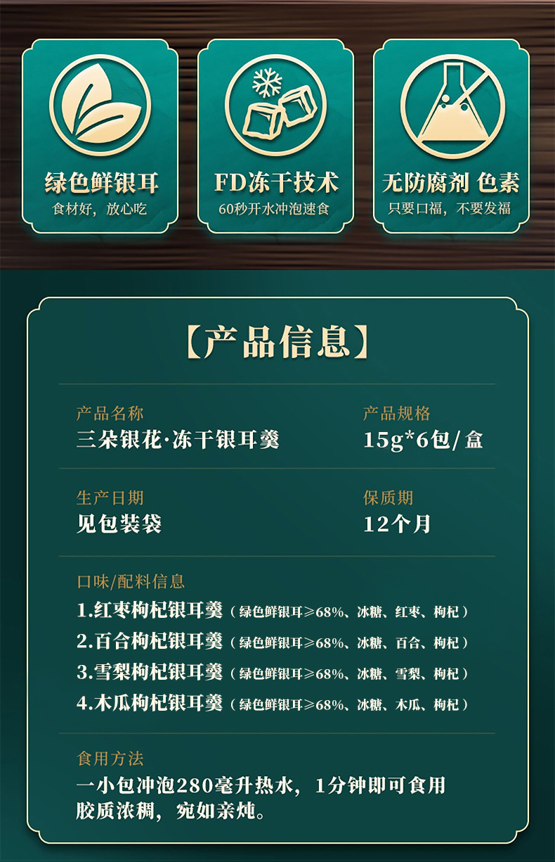 【0蔗糖】三朵银花 银耳姐姐 燕窝银耳羹15克*6包/盒 红枣枸杞银耳汤