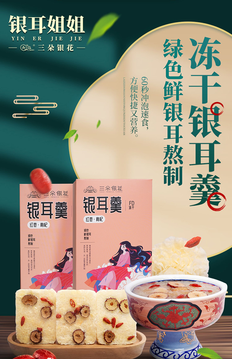 银耳姐姐 三朵银花 有机银耳羹即食代餐90克/盒 冻干红枣枸杞冲泡速食免煮