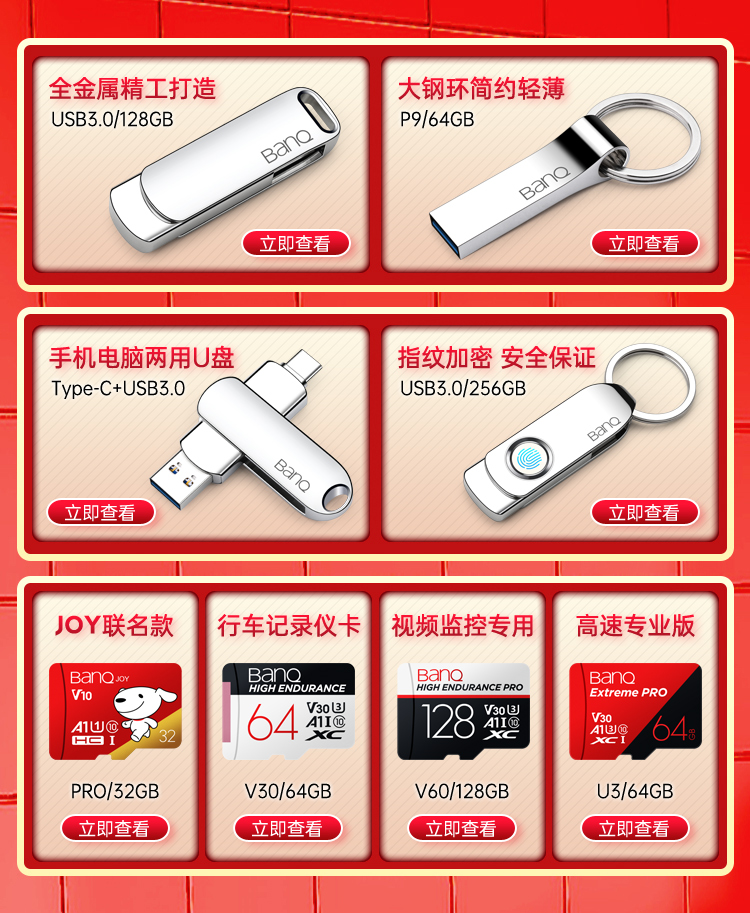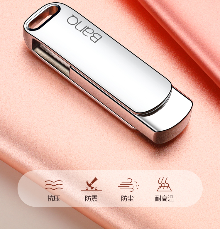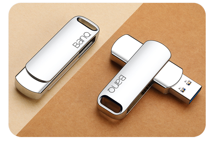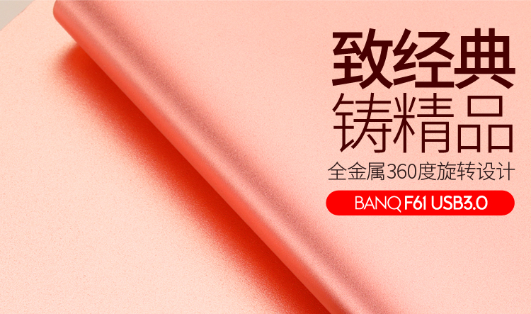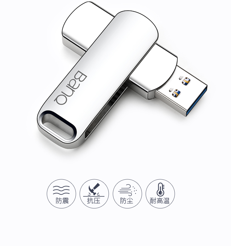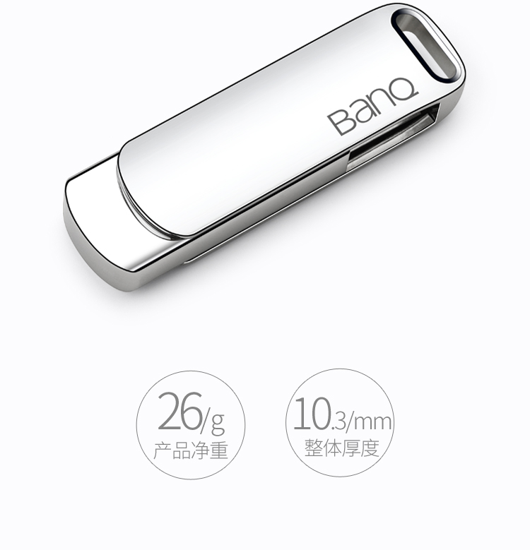 banq 64GB USB3.0 U盘 F61高速版 银色 全金属电脑车载两用优盘 360度旋转 防震抗压 质感十足