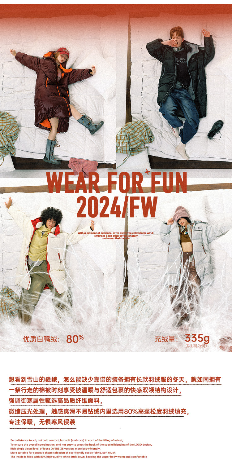 BJHG不计后果长款羽绒服女冬季新款情侣潮牌中戏高级感加厚外套男