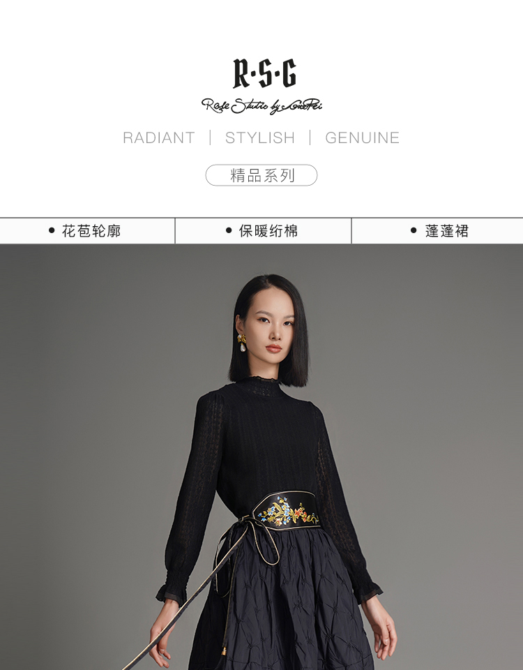 RSG郭培成衣品牌国风花苞形新中式设计感穿搭绗缝夹棉秋冬蓬蓬裙