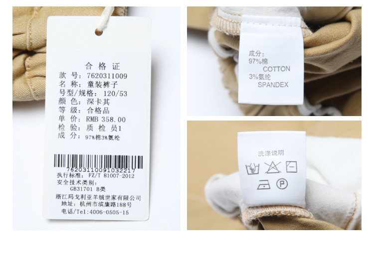 | 裤子分类: 普通休闲裤 | 安全等级: B类 |