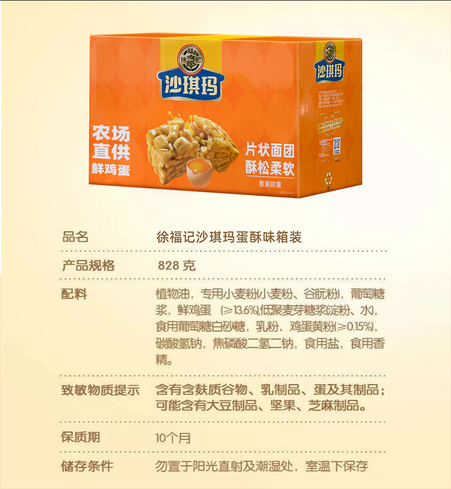 徐福记 松软鸡蛋味沙琪玛 828g/盒 零食小吃 休闲食品 糕点 独立小包装