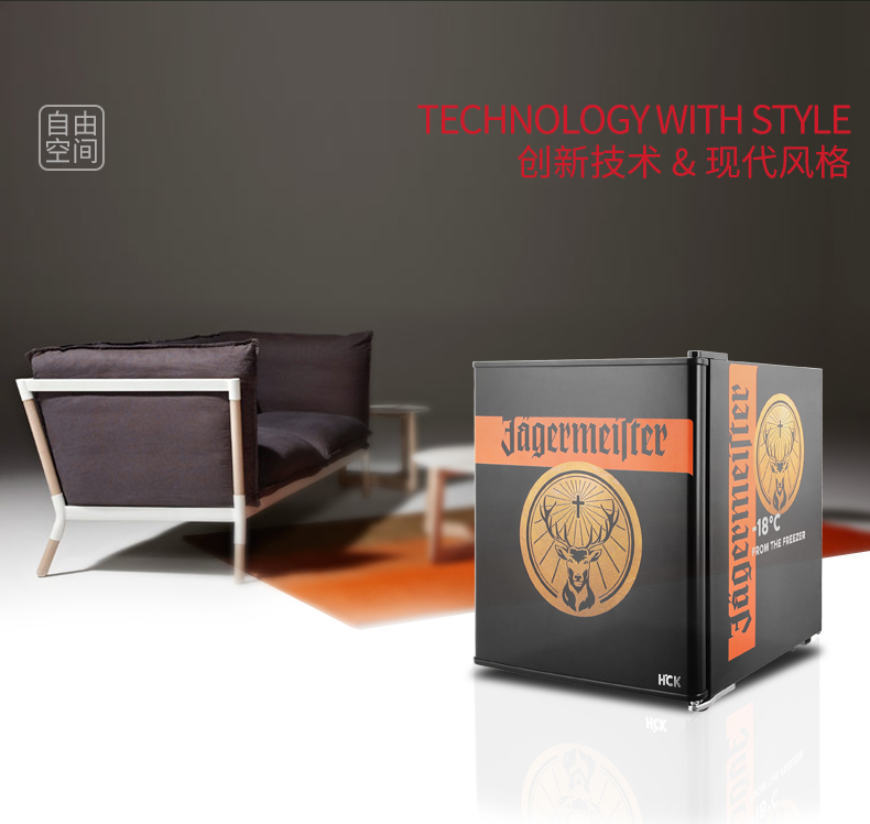 HCK哈士奇 BC-46RMC 冰箱野格酒联名家用客厅小型冷藏酒柜冰吧