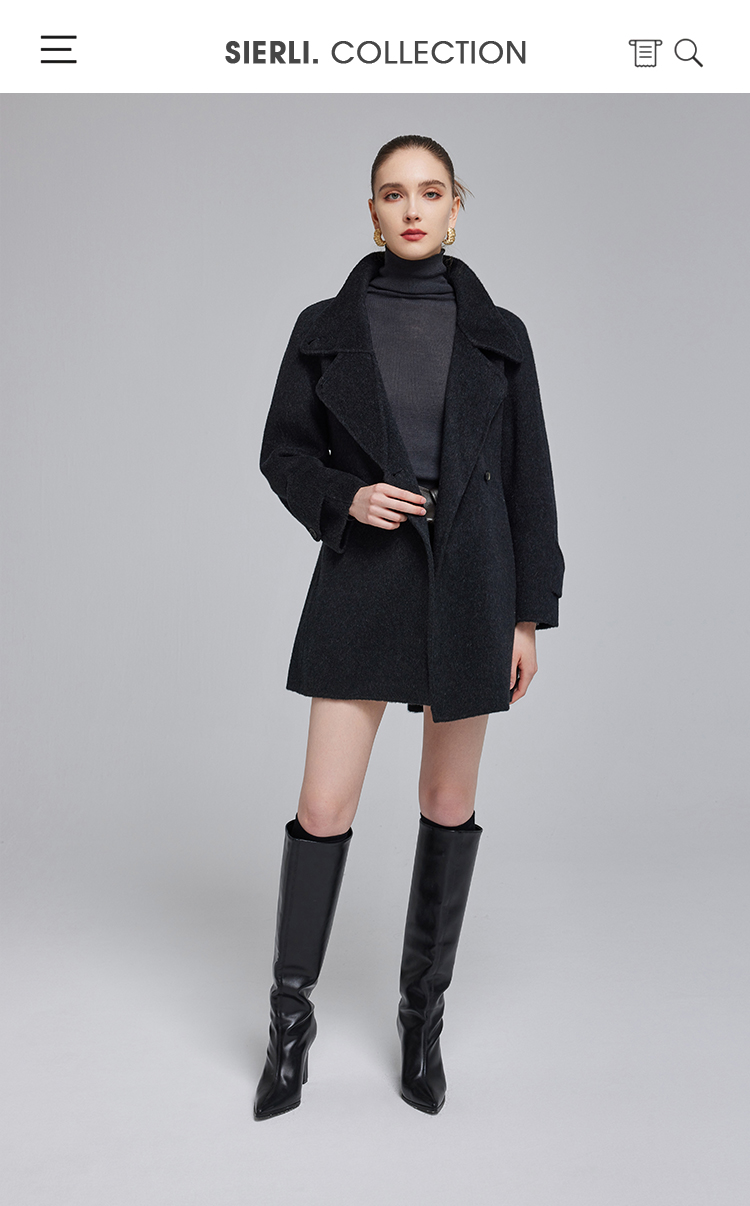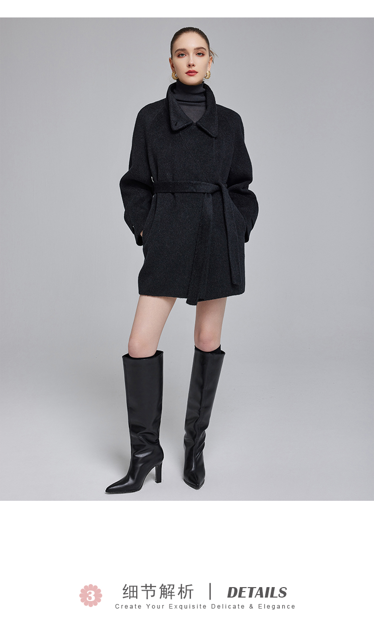 NH925斯尔丽23冬季新款设计感领时尚系腰带显高显瘦双面呢大衣