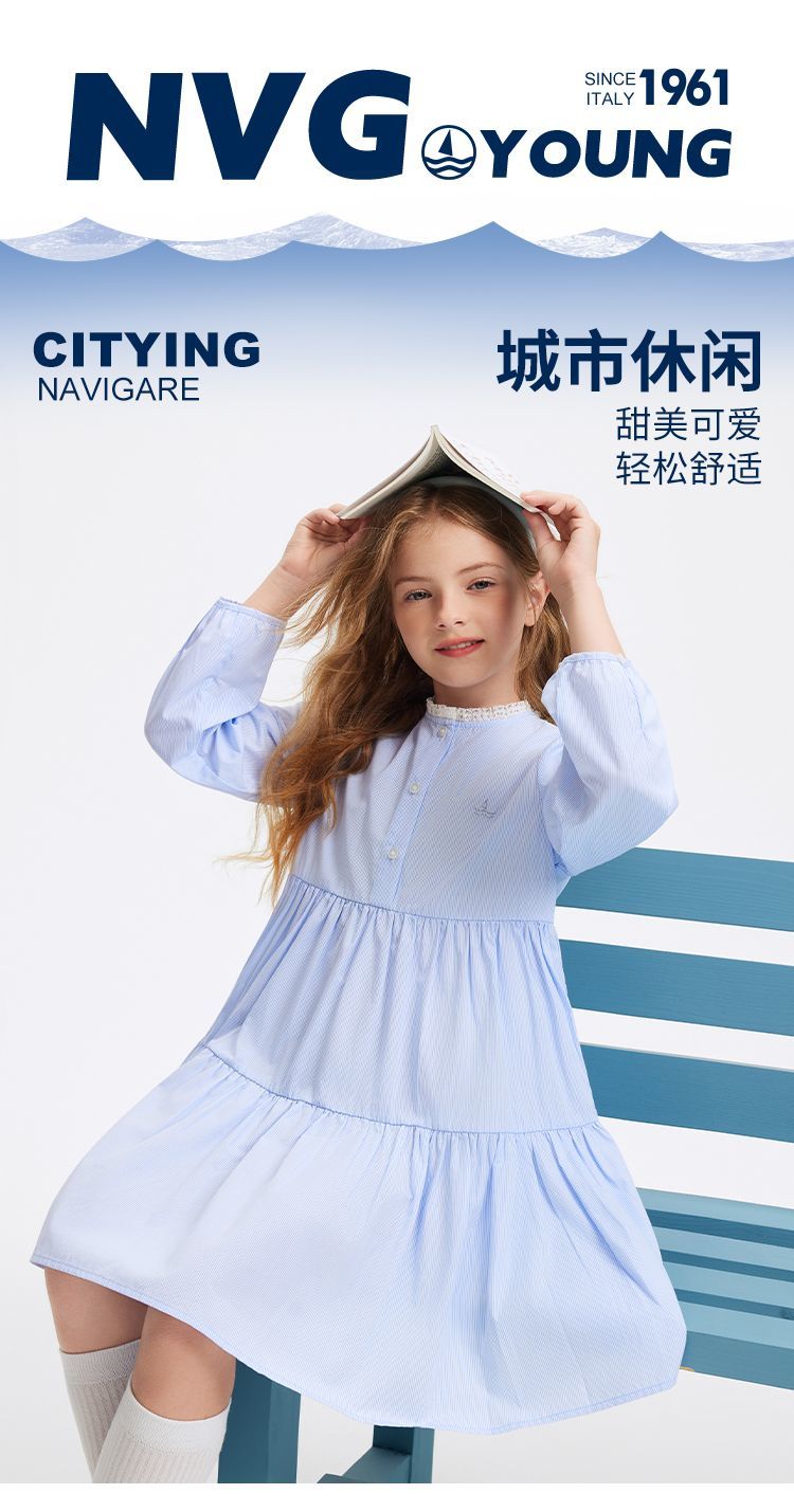 【纳维凯尔】【120-165】意大利小帆船女童春秋连衣裙